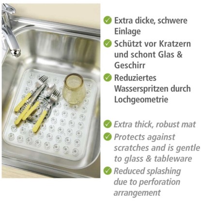 Diese extra dicke und wertige Abtropfmatte wertet das Spülbecken neben dem funktionalen Vorteil auch optisch auf und verhindert das Verrutschen von Geschirr.