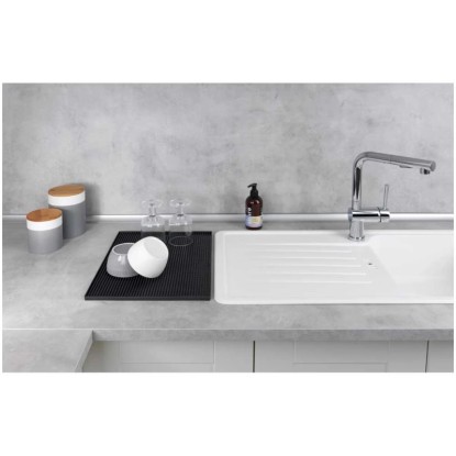 Die Abtropfmatte bietet eine extra grosse Oberfläche zum Abtropfen von Gläsern und Tassen. Durch die Noppenstruktur kann das Spülwasser optimal abfliessen, so dass das Geschirr schnell trocknet. Die Matte eignet sich auch ideal auch zum aufrechten Abtropfen von Schneidebrettern.