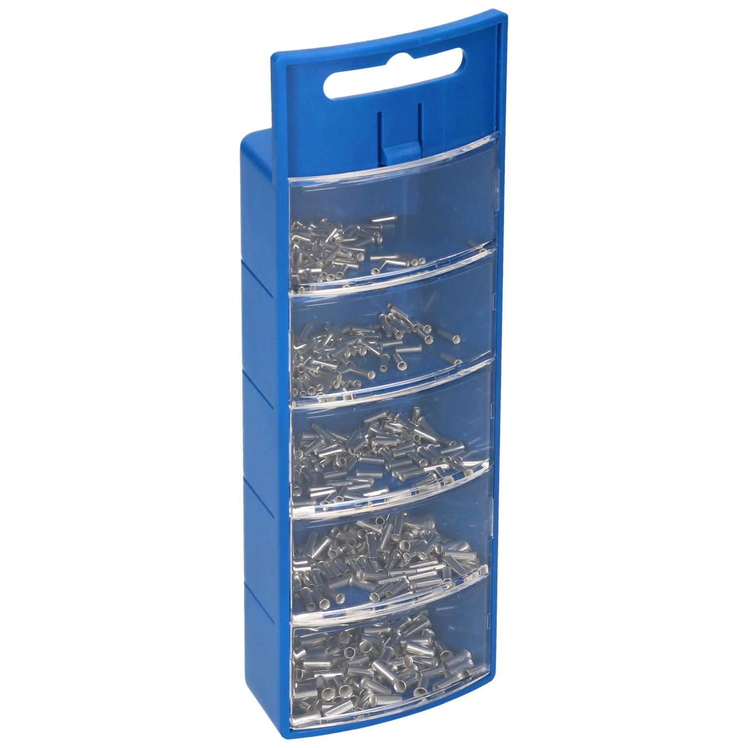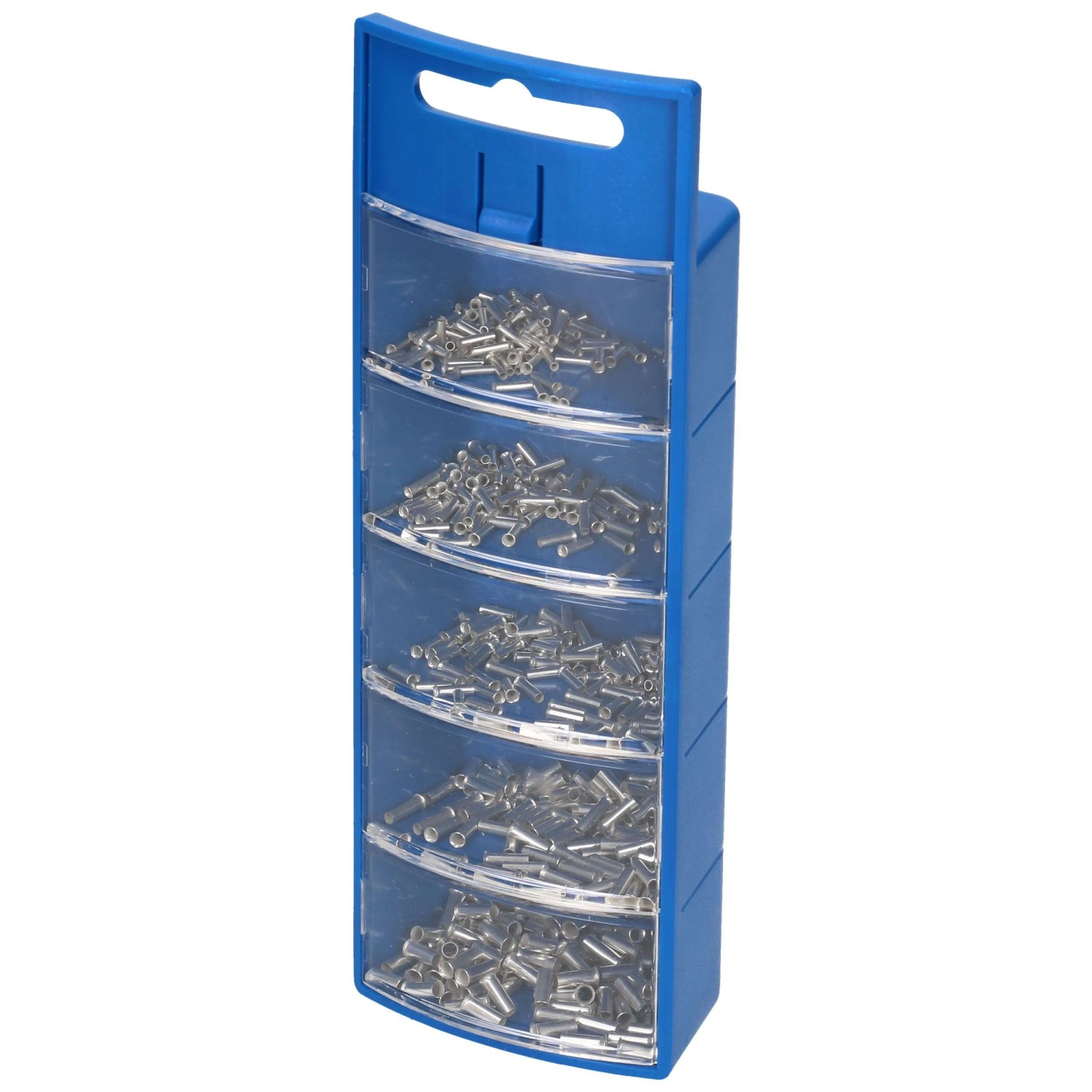 Diese praktische Aderendhülsen-Box bietet ein umfangreiches Angebot an unisolierten Aderenhülsen in einer hochwertigen Aufbewahrungsbox.