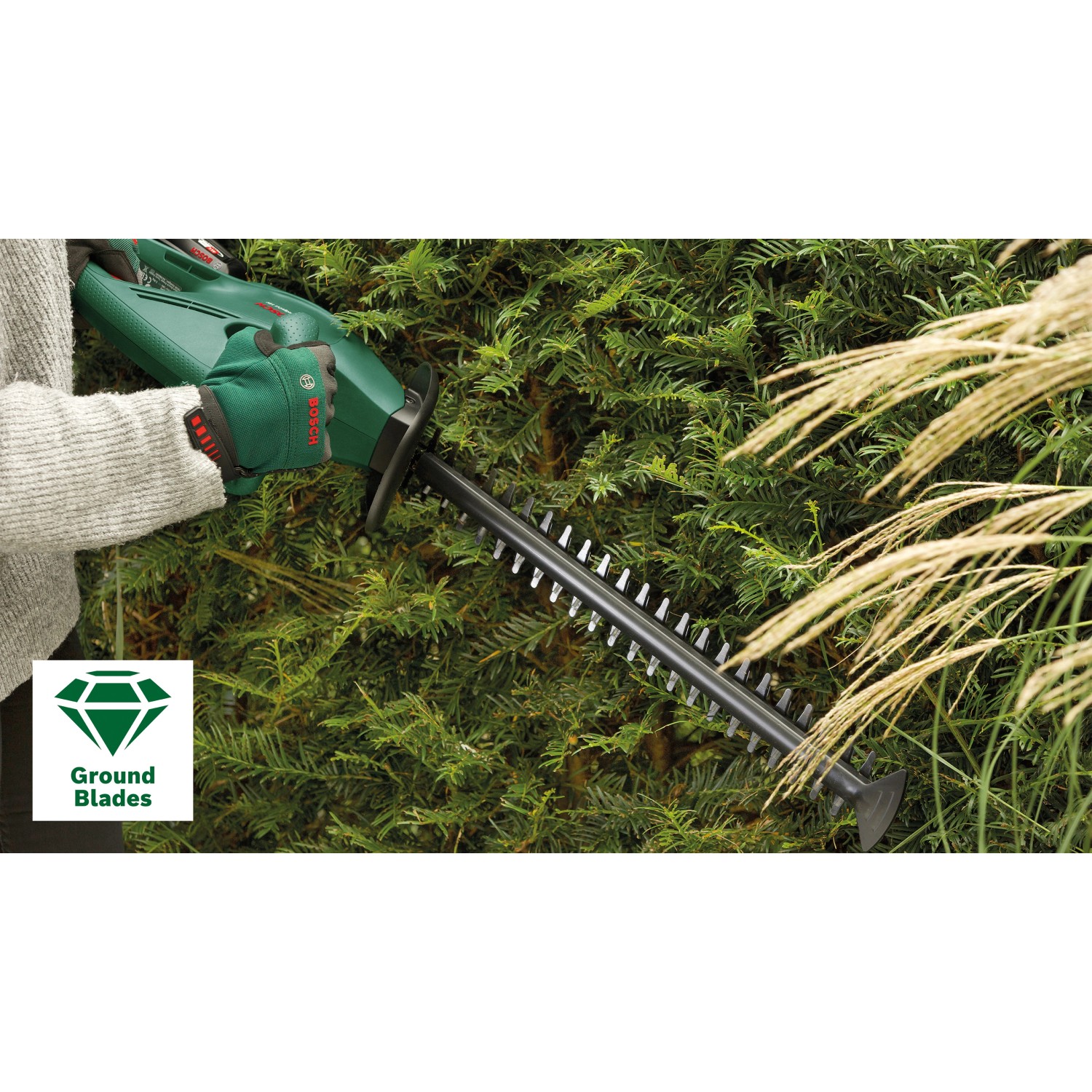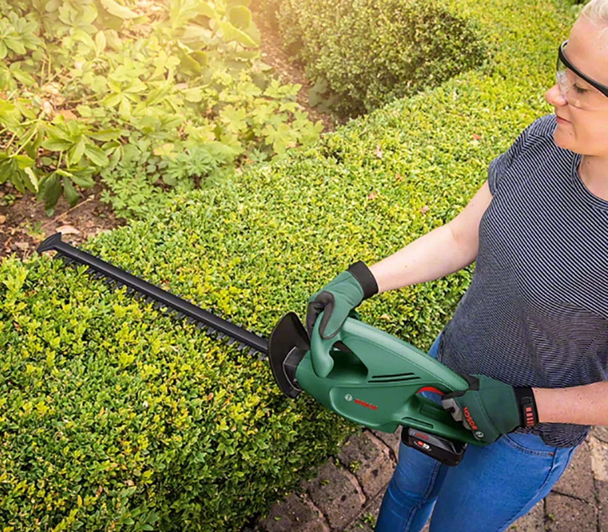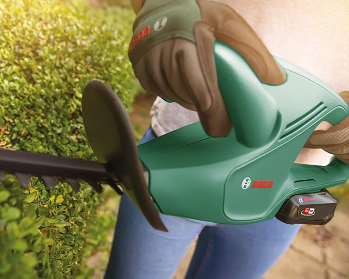 Die Bosch Akku-Heckenschere EasyHedgeCut 18-45 überzeugt durch kabellose Mobilität und maximale Leistung. Mit der Akku-Heckenschere haben Sie leichtes Spiel. Sie ist leicht, ergonomisch ausbalanciert und bietet zudem mehr Bewegungsfreiheit, ohne die Gefahr ein Kabel zu durchtrennen. Das Gerät ist kraftvoll durch perfekt aufeinander abgestimmte Komponenten. Motor, Getriebe und Akku bieten optimale Gebrauchseigenschaften und eine hohe Schnittleistung, so lässt sich komfortabel und kraftvoll Arbeiten. Das Anti-Blockier-System sorgt für einen noch effizienteren Schnitt. Zudem verfügt die Heckenschere über ein diamantgeschliffenes, scharfes und schnittstarkes Messer mit 45 cm Länge und einer Zahnöffnung von 15 mm. Es eignet sich ideal zum Schneiden von jungen Hecken. Die Akku-Heckenschere ermöglicht ein einfaches und unbeschwertes Arbeiten, auch über einen längeren Zeitraum.