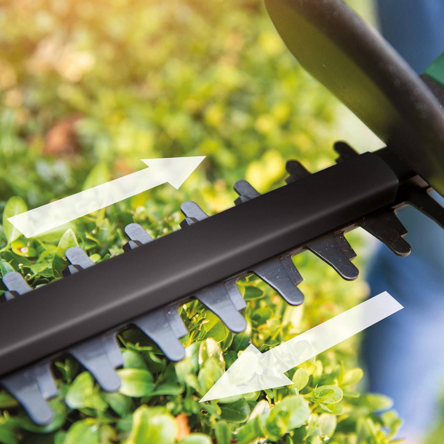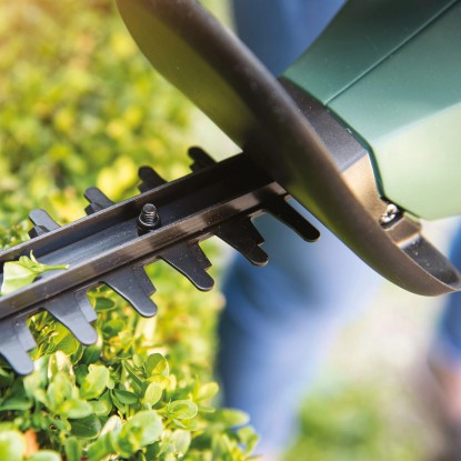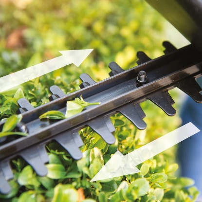 Das Anti-Blockier-System sorgt für einen noch effizienteren Schnitt. Zudem verfügt die Heckenschere über ein diamantgeschliffenes, scharfes und schnittstarkes Messer mit 45 cm Länge und einer Zahnöffnung von 15 mm. Es eignet sich ideal zum Schneiden von jungen Hecken.