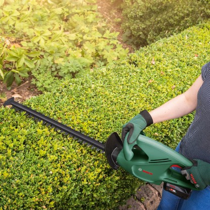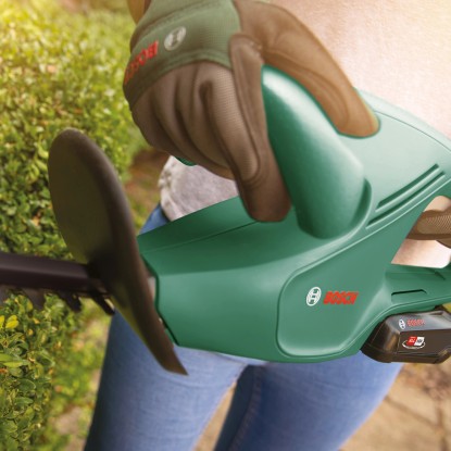 Die Bosch Akku-Heckenschere EasyHedgeCut 18-45 überzeugt durch kabellose Mobilität und maximale Leistung. Mit der Akku-Heckenschere haben Sie leichtes Spiel. Sie ist leicht, ergonomisch ausbalanciert und bietet zudem mehr Bewegungsfreiheit, ohne die Gefahr ein Kabel zu durchtrennen. Das Gerät ist kraftvoll durch perfekt aufeinander abgestimmte Komponenten. Motor, Getriebe und Akku (nicht im Lieferumfang enthalten) bieten optimale Gebrauchseigenschaften und eine hohe Schnittleistung. So lässt sich komfortabel und kraftvoll Arbeiten.