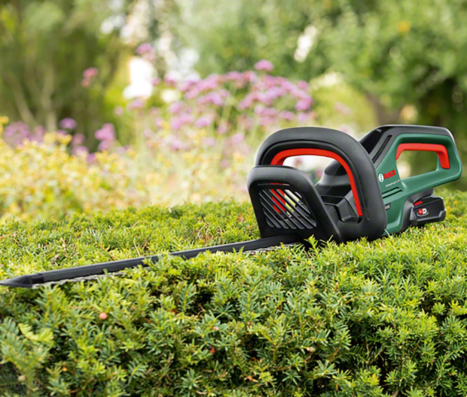 Die Bosch Akku-Heckenschere UniversalHedgeCut 18-55 eignet sich perfekt zum Trimmen mittelgrosser Hecken. Sie verfügt über die Bosch Quick-Cut-Technologie, die jedes Mal für saubere Schnitte sorgt.