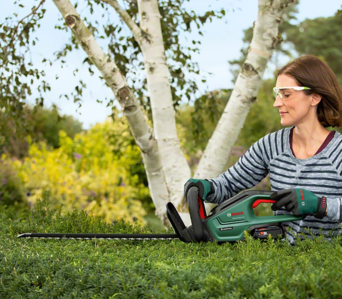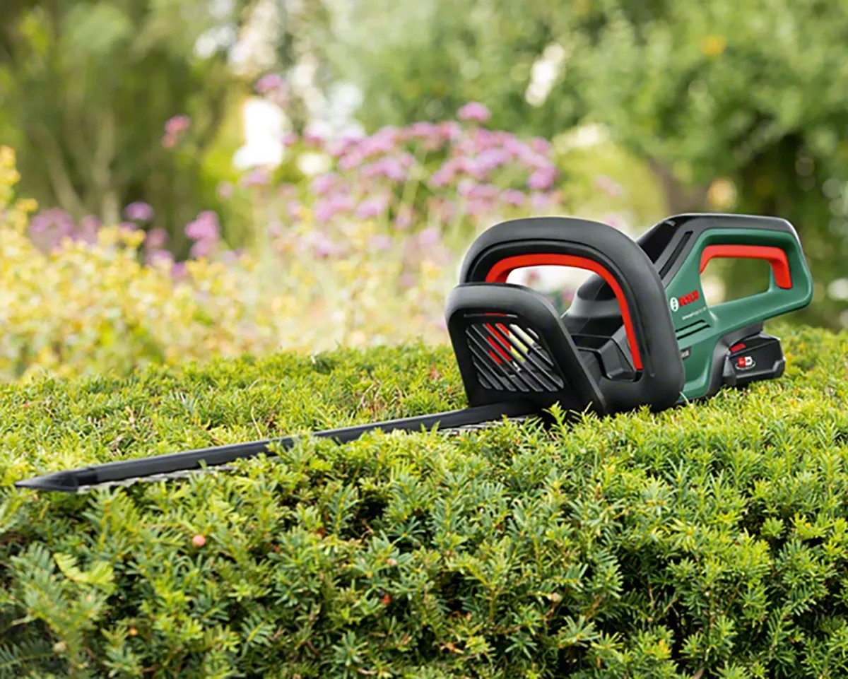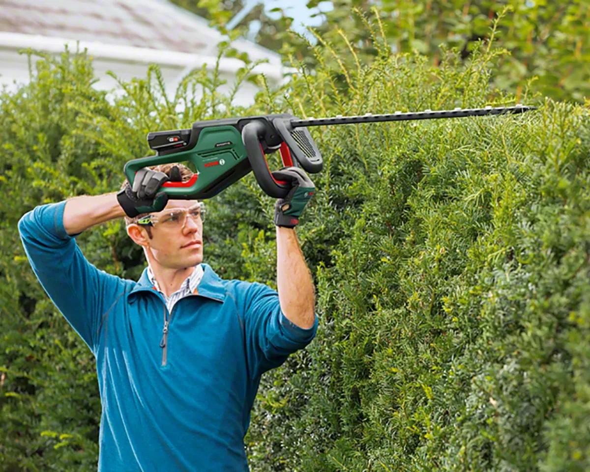 Die Bosch Akku-Heckenschere UniversalHedgeCut 18-55 eignet sich perfekt zum Trimmen mittelgrosser Hecken. Sie verfügt über die Bosch Quick-Cut-Technologie, die jedes Mal für saubere Schnitte sorgt. Ein leistungsstarker 18-V-Lithium-Ionen-Akku bietet schnurlose Mobilität bei optimaler Leistung. Der vordere Griff mit mehreren Positionen ermöglicht bequemes und ermüdungsfreies Arbeiten in jeder Position. Eine 55-cm-Klinge mit 20 mm Zahnöffnung und das Bosch-Antiblockiersystem ermöglichen ein kraftvolles und kontinuierliches Schneiden ohne die Gefahr von Blockierungen. Sie verfügt über eine Blattsäge für Äste mit einer Breite von bis zu 25 mm und einen Blattspitzenschutz für das sichere Schneiden entlang von Wänden und Wegen.