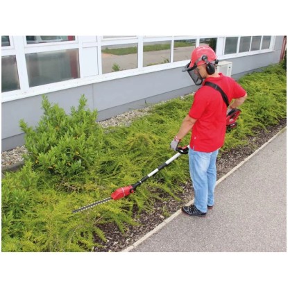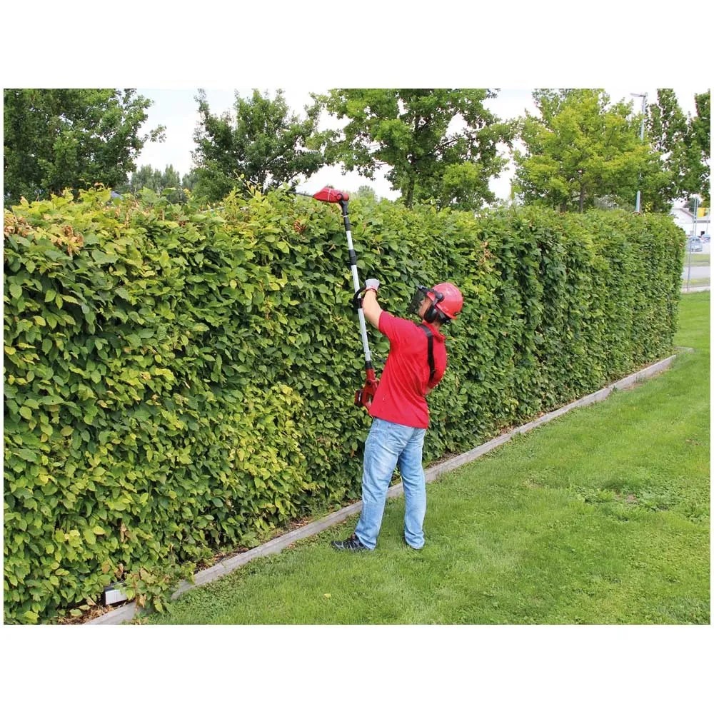 Die Akku-Hochheckenschere GE-HH 18/45 Li T ist ein sehr leistungsstarkes Gerät, das bei der stromnetzunabhängigen Pflege von Hecken, Sträuchern und Gebüschen auf grossen Grundstücken und in Schrebergärten gute Dienste leistet. Dabei sorgt das Metallgetriebe für hohe Langlebigkeit und die Messer aus lasergeschnittenem und diamantgeschliffenem Stahl für saubere Schnittresultate. Durch die vielseitigen Einstellmöglichkeiten, lässt sich diese Strauchschere schnell und einfach auf jede Arbeitssituation anpassen. Batterie und Ladegerät sind nicht im Lieferumfang enthalten.