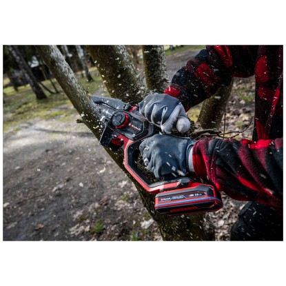 Die Einhell Akku-Astkettensäge GP-PS 18/20 Li BL-Solo eignet sich für exakte Rück- und Formschnitte sowie zum Zerkleinern von Grünschnitt und Schneiden von Kantholz. Sie ist mit einem bürstenlosen Motor ausgestattet und bietet mehr Kraft und eine längere Laufzeit. Das Modell verfügt über eine Schnittlänge von 15 cm und erreicht eine Kettengeschwindigkeit von bis zu 8 m/s. Der werkzeuglose Schwert- und Kettenwechsel sowie die werkzeuglose Kettenspannung ermöglichen eine besonders einfache Handhabung. Die Kettensäge bietet eine automatische Kettenschmierung und ist mit Handschutz, klappbarer Kettenabdeckung, Rückschlagschutz sowie Softgrip-Flächen für Sicherheit und Komfort ausgestattet. Ein Überlastschutz sorgt für die Langlebigkeit des Motors. Die Lieferung erfolgt ohne Akku und Ladegerät, diese sind separat erhältlich.
