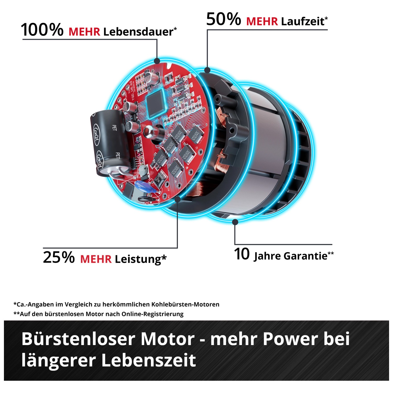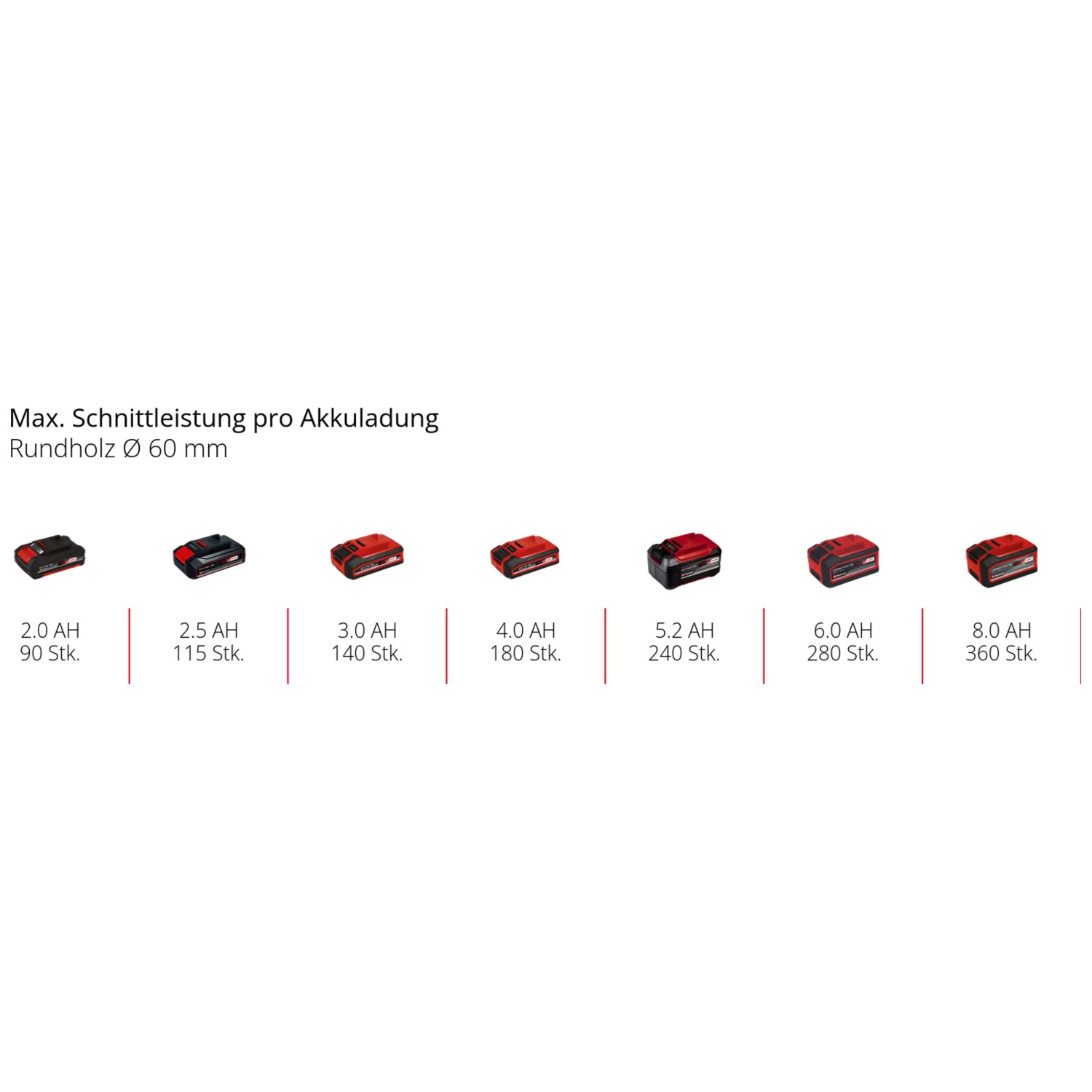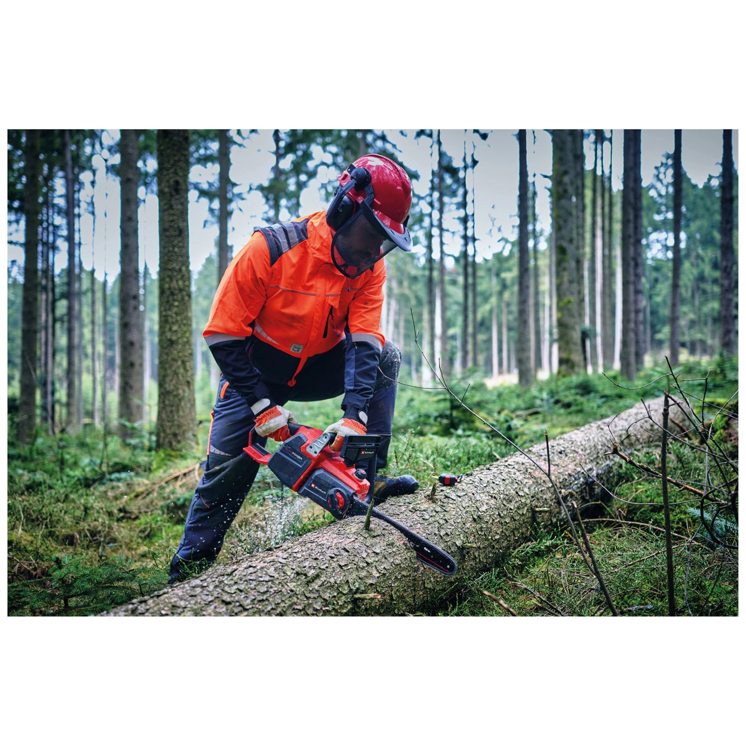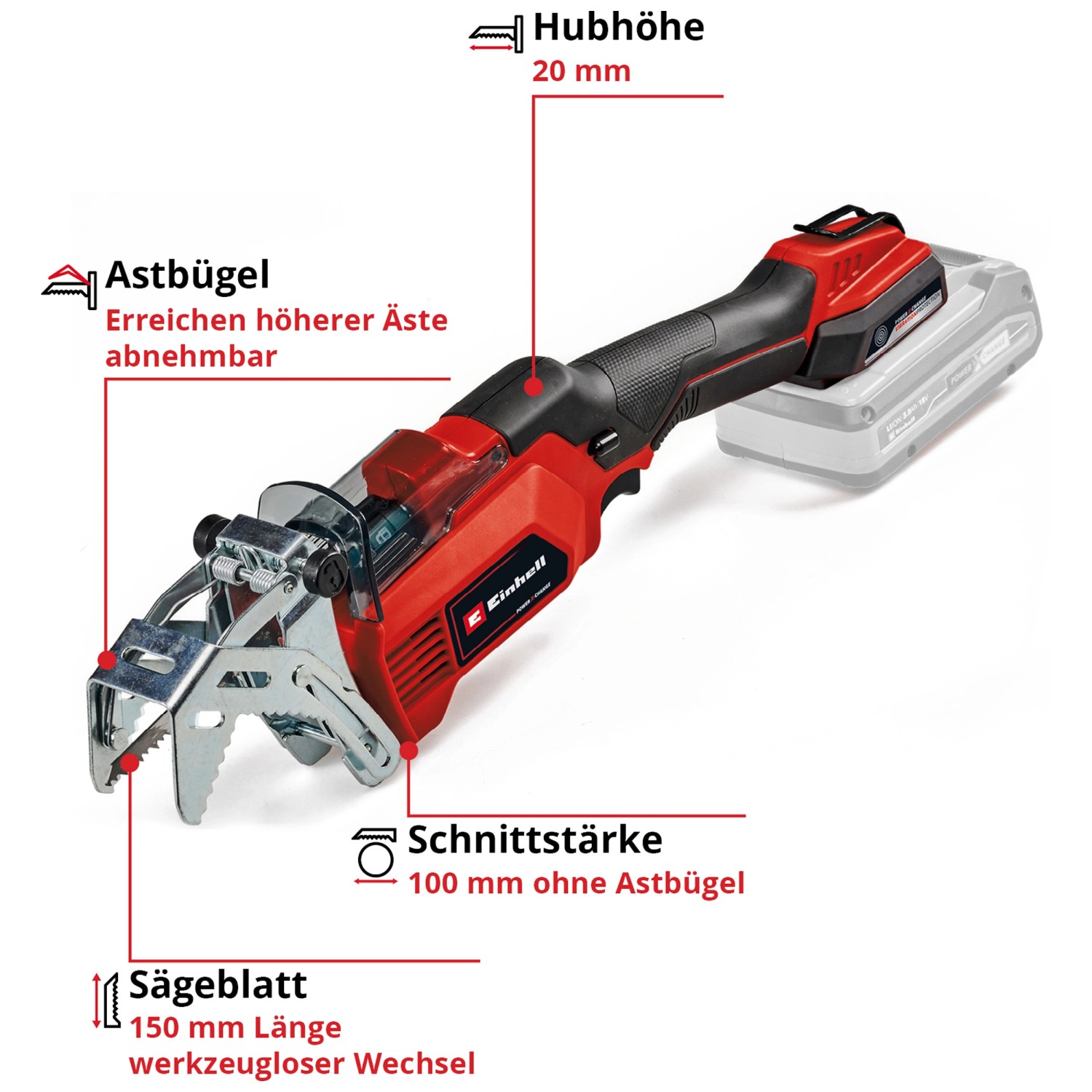 Die Einhell Professional Akku-Kettensäge GP-LC 36/40 Li BL-Solo ist ein zuverlässiger Helfer zum Fällen mittlerer und grösserer Bäume. Angetrieben wird das Gerät von einem Einhell Brushless Motor für mehr Kraft und längere Laufzeit. Nach Online-Registrierung gelten 10 Jahre Garantie auf den Motor. Die Kettensäge mit 38 cm Schnittlänge ist mit einer hochwertigen OREGON Kette mit 1,3 mm Treibgliedstärke, 56 Treibgliedern und 3/8" Kettenteilung ausgestattet. Die Sägekette wird dauerhaft und vollautomatisch mit Öl aus dem 230 ml grossen Öltank versorgt. Zum optimalen Schutz können die Akkus seitlich im Gehäuse des Geräts angebracht werden. Die Lieferung erfolgt ohne Akku und ohne Ladegerät. Die Einhell Akku-Astsäge GE-GS 18/150 Li-Solo kommt überall dort zum Einsatz, wo Äste an Bäumen oder Sträuchern geschnitten werden. Sie ist Teil der Power X-Change Familie und arbeitet dank Akku-Power und robustem Metallgetriebe mit Hubzahlen bis zu 2'800 min-1 und einer Hubhöhe von 20 mm. So können bis zu 8 cm dicke Äste mit und bis zu 10 cm dicke Äste ohne dem abnehmbaren Astbügel gesägt werden. Die ergonomisch geformte, leichte Säge verfügt über einen Gürtelclip, eine werkzeuglose Sägeblattaufnahme (U-Schaft) mit Schutzabdeckung, einen erhöhten Schutzkragen und einen Sicherheitsschalter. Lieferung inkl. 2x Sägeblatt, aber ohne Akku und ohne Ladegerät.