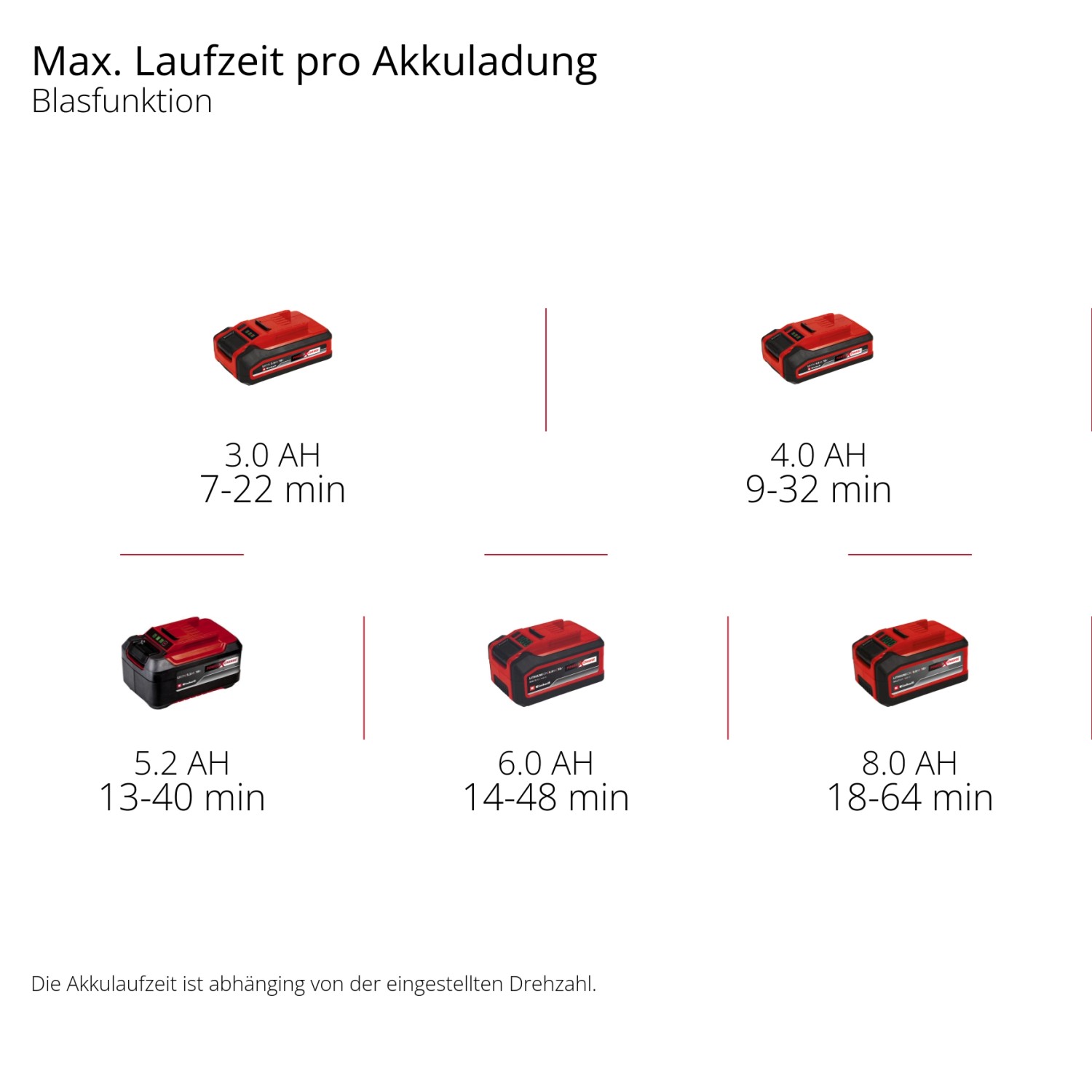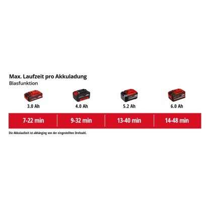 Der Akku-Laubsauger und Laubbläser ist Mitglied der Einhell Power X-Change-Familie und wird mit einem leistungsstarken 18-V-Lithium-Ionen-Akku betrieben. Die optimale Leistung wird durch einen Akku mit 3,0 Ah oder mehr erzielt. Die Akkus können flexibel für alle Gartengeräte und Werkzeuge der Power X-Change-Familie verwendet werden. Mit einer praktischen LED-Füllstandsanzeige am Akku arbeiten Sie besonders vorausschauend. Zudem sind die Akkus dank der automatischen ABS-Akkuüberwachung äusserst robust und langlebig.