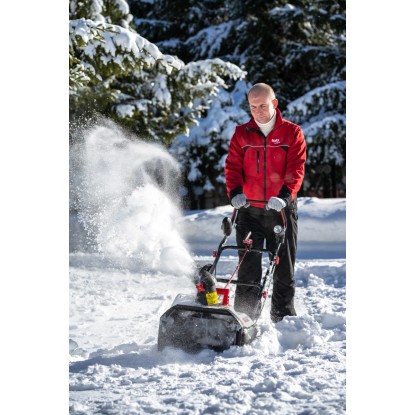 Die praktische 1-stufige Schneefräse befördert den Schnee mittels des manuell einstellbaren Auswurfkanals bis zu 6 m.