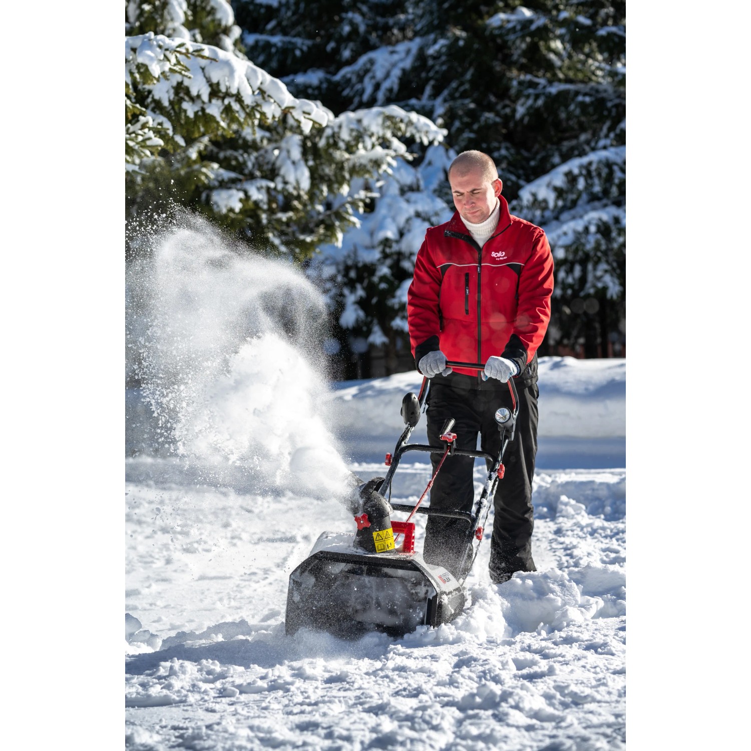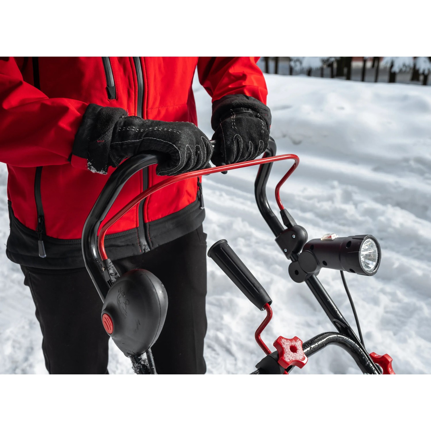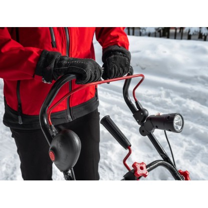 Mit 48 cm Räumbreite und 20 cm Einzugshöhe ist Neuschnee kinderleicht und besenrein beseitigt. Das Räumpaddel dient dabei als Vortrieb.