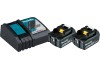 Das Makita Energypack EPAC18-402 besteht aus drei Teilen. Es beinhaltet zwei Akkus des Typs BL1840B und das Schnellladegerät DC18RC.