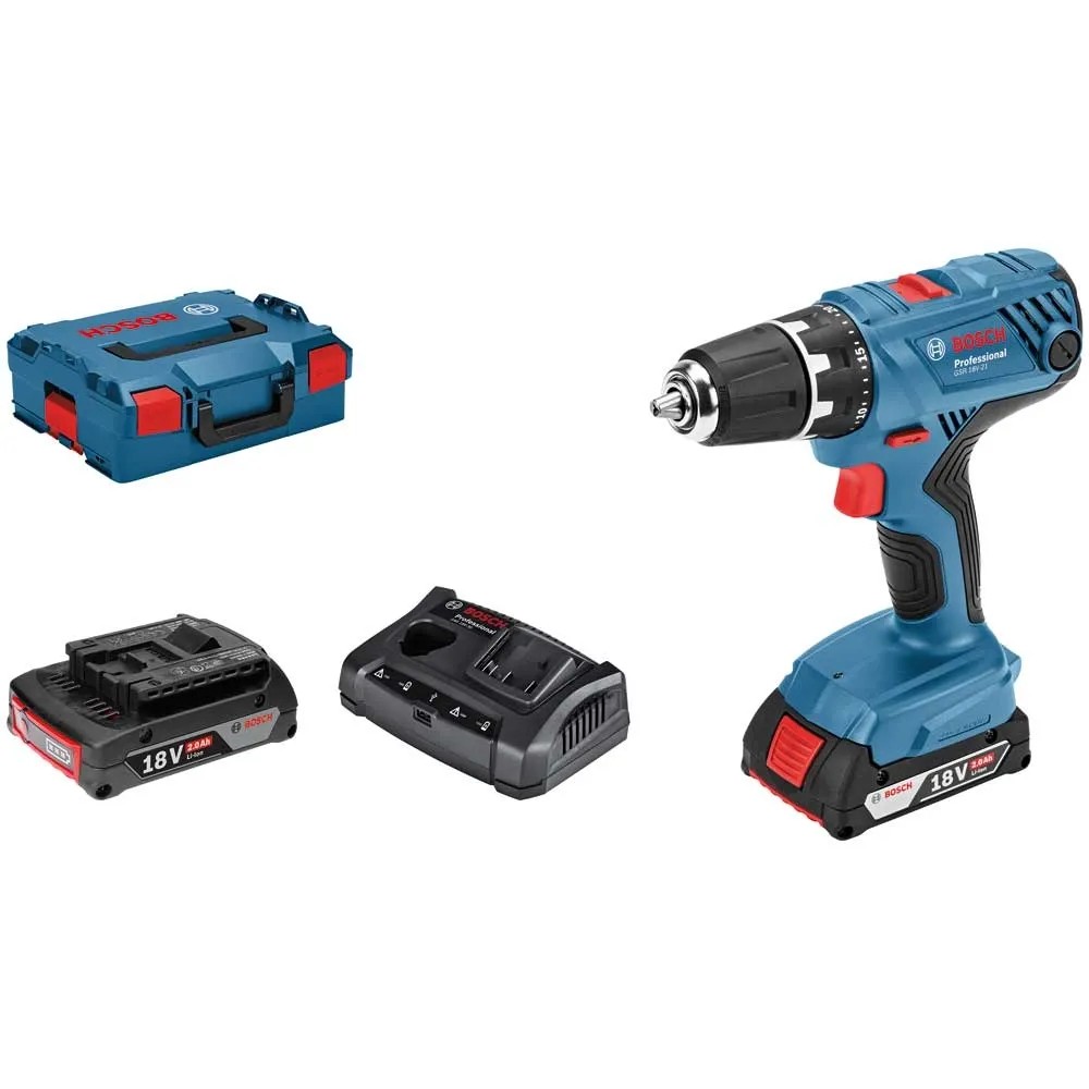 Bosch Akku-Bohrschrauber GSR 18V-21 inkl. 2 x 2,0 Ah Li-Ion Akku und L-Boxx 136