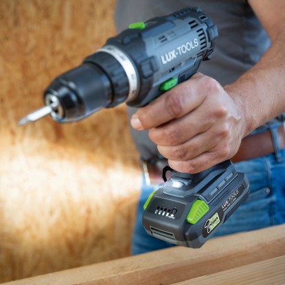 Mit dem LUX Akku-Maschinenset bekommen Sie gleich drei Geräte des LUX-TOOLS 1 PowerSystems. Im Set enthalten sind die LUX-TOOLS Bohrmaschine A-BS-20 mit leistungsstarkem 2-Gang-Getriebe, die LUX-TOOLS Stichsäge A-ST-20 mit dreistufigem Pendelhub sowie der LUX-TOOLS Winkelschleifer A-WS-20/115A, der für Schleifscheiben mit einem Durchmesser von 115 mm geeignet ist. Damit Sie gleich loslegen können, gehören auch ein hochwertiger 20 V Li-Ion-Akku (2.0 Ah), ein Schnellladegerät und praktisches Zubehör zum Lieferumfang dazu. Und mit der geräumigen LUX-TOOLS Tragetasche mit gepolsterten Griffen können Sie Ihr neues Akku-Maschinenset sicher verstaut überall mit hinnehmen, wo Sie es benötigen