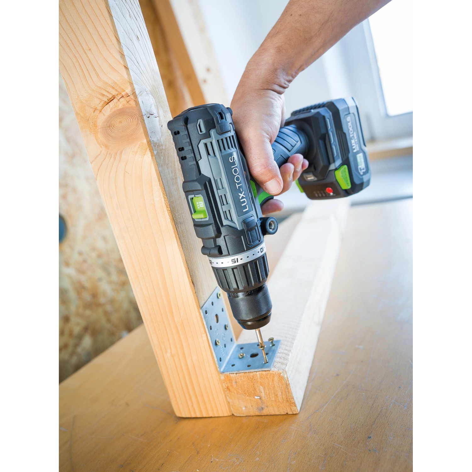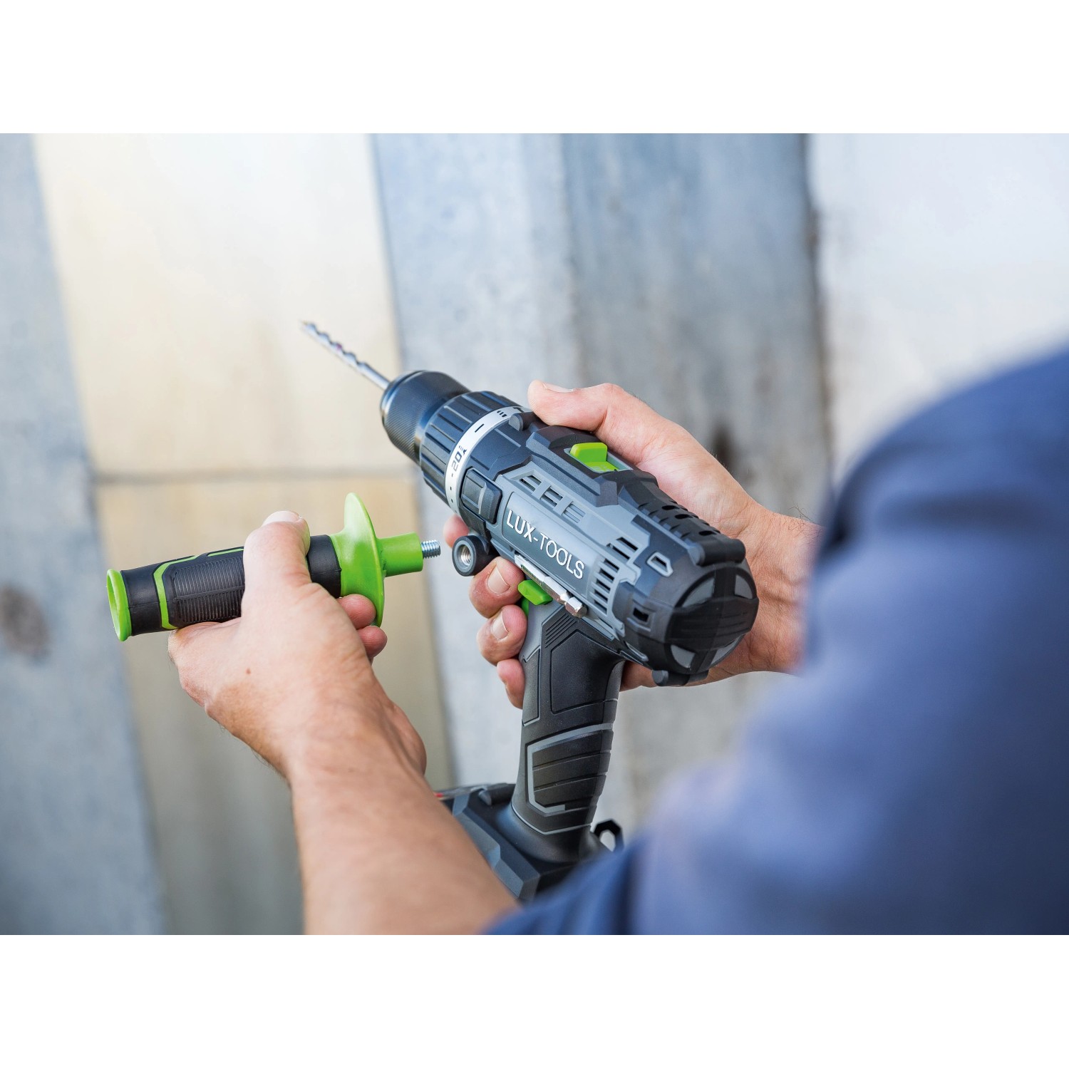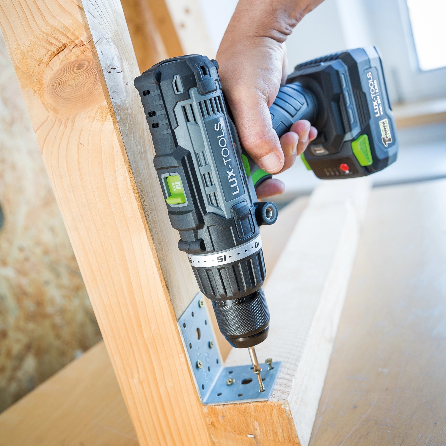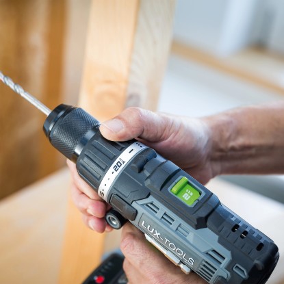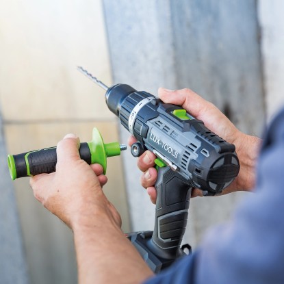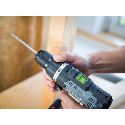 Der LUX-Tools Schlagbohrschrauber A-BS-20/S überzeugt mit gleich drei Funktionen: Schrauben, Bohren und Schlagbohren. Damit bietet er Ihnen als versierten Heimwerker vielseitige Einsatzmöglichkeiten beim Hand-, Heim- und Hobbywerken. Der Bohrer gehört zum praktischen LUX 1-Power-System und kann mit den hochwertigen 20 V (18 V nominal) Lithium-Ionen-Akkus dieser Serie betrieben werden. Der Akku-Betrieb bietet Ihnen viel Bewegungsfreiheit und Flexibilität, da kein störendes Stromkabel vorhanden ist und Sie unabhängig einer Stromquelle arbeiten können.
