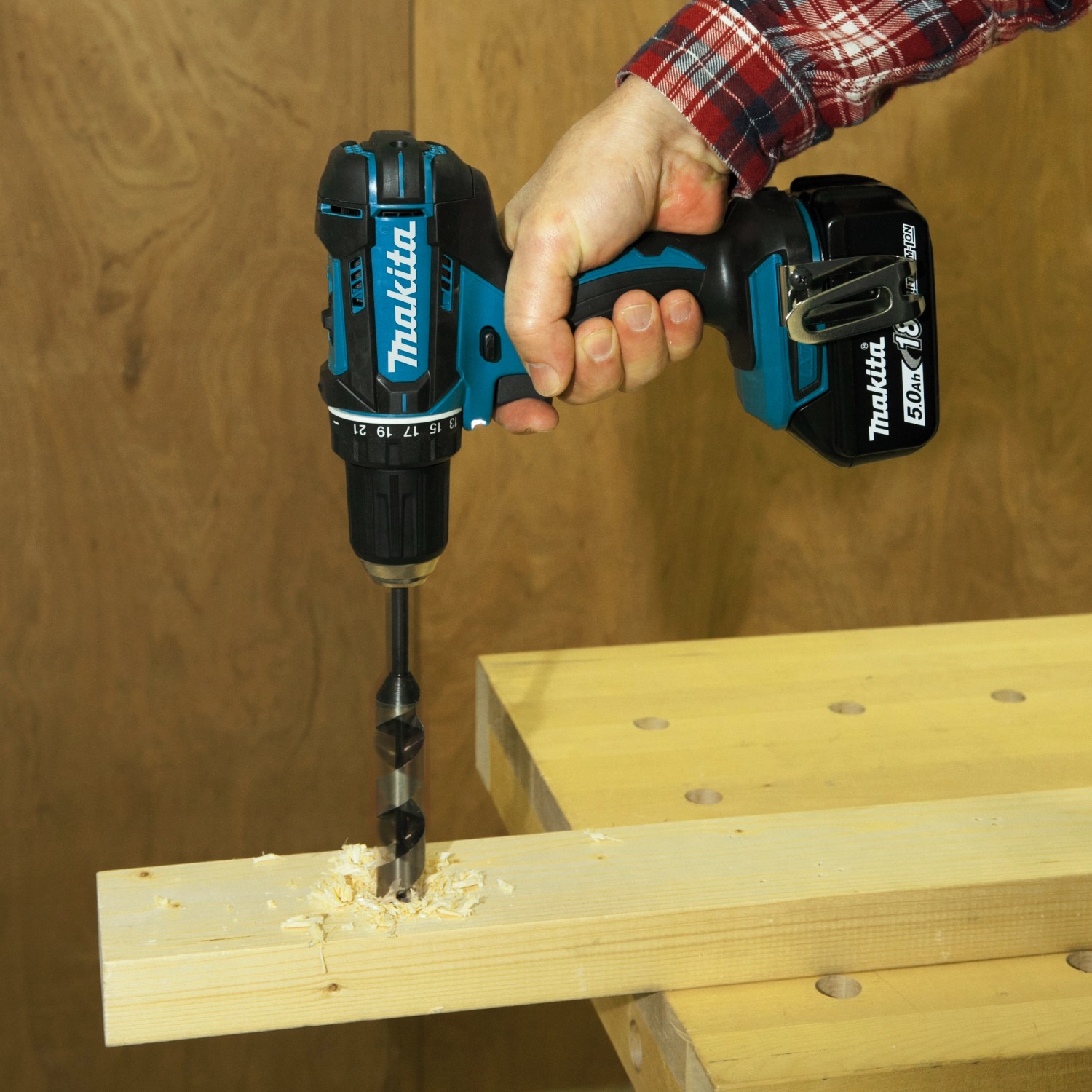 Der praktische Akku-Bohrschrauber DDF482RFJ von Makita unterstützt Sie bei mittelschweren bis schweren Bohr- und Schraubarbeiten in Holz und anderen Materialien. Das durchdachte Akku-Gerät lässt sich dank kabellosem Betrieb jederzeit unabhängig von Stromquellen flexibel verwenden und bietet Ihnen so maximale Bewegungsfreiheit beim Schrauben und Bohren. Geliefert wird der Akku-Bohrschrauber mit zwei hochwertigen Lithium-Ionen-Akkus mit einer Leistung von 18 V. Sie zeichnen sich durch ihre langlebigen und robusten Eigenschaften aus - keine Selbstentladung, kein Memory-Effekt - und weisen eine Kapazität von 3 Ah auf. Die integrierte Ladestandsanzeige ermöglicht Ihnen stets die Überprüfung der verbleibenden Leistung. Mit dem im Set enthaltenen Ladegerät sind die Akkus innerhalb weniger Stunden voll aufgeladen.