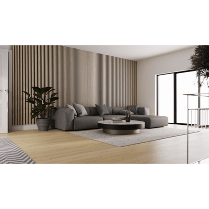 Das Paneel Acu-Line wird aus Holz und anderen kontrollierten Quellen hergestellt und mit Fokus auf Design und Langlebigkeit produziert. Dank der einfachen Installation, die nur minimale Werkzeuge erfordert, ist es eine ideale Lösung für jede Wohnraumgestaltung. Zudem trägt das Paneel dazu bei, Lärm zu reduzieren und die Raumakustik für eine angenehmere Atmosphäre zu verbessern.