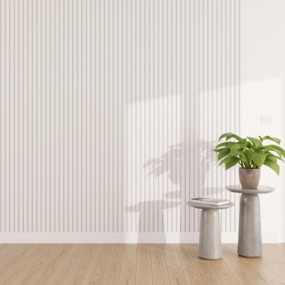 Die MDF-Leisten sind mit einer Folie in Weiss versehen. Die Folie legt sich um die Lamellen und gibt ihnen ein massives und zugleich schlichtes Aussehen. Die Paneele werden in vormontierten Modulen geliefert, wodurch sie sich ganz einfach an Wänden und Decken installieren lassen. Sie benötigen keine Abschlussleisten und können einfach mit einem leicht feuchten Tuch gereinigt werden. Ausserdem sind sie absolut wartungsfrei.
