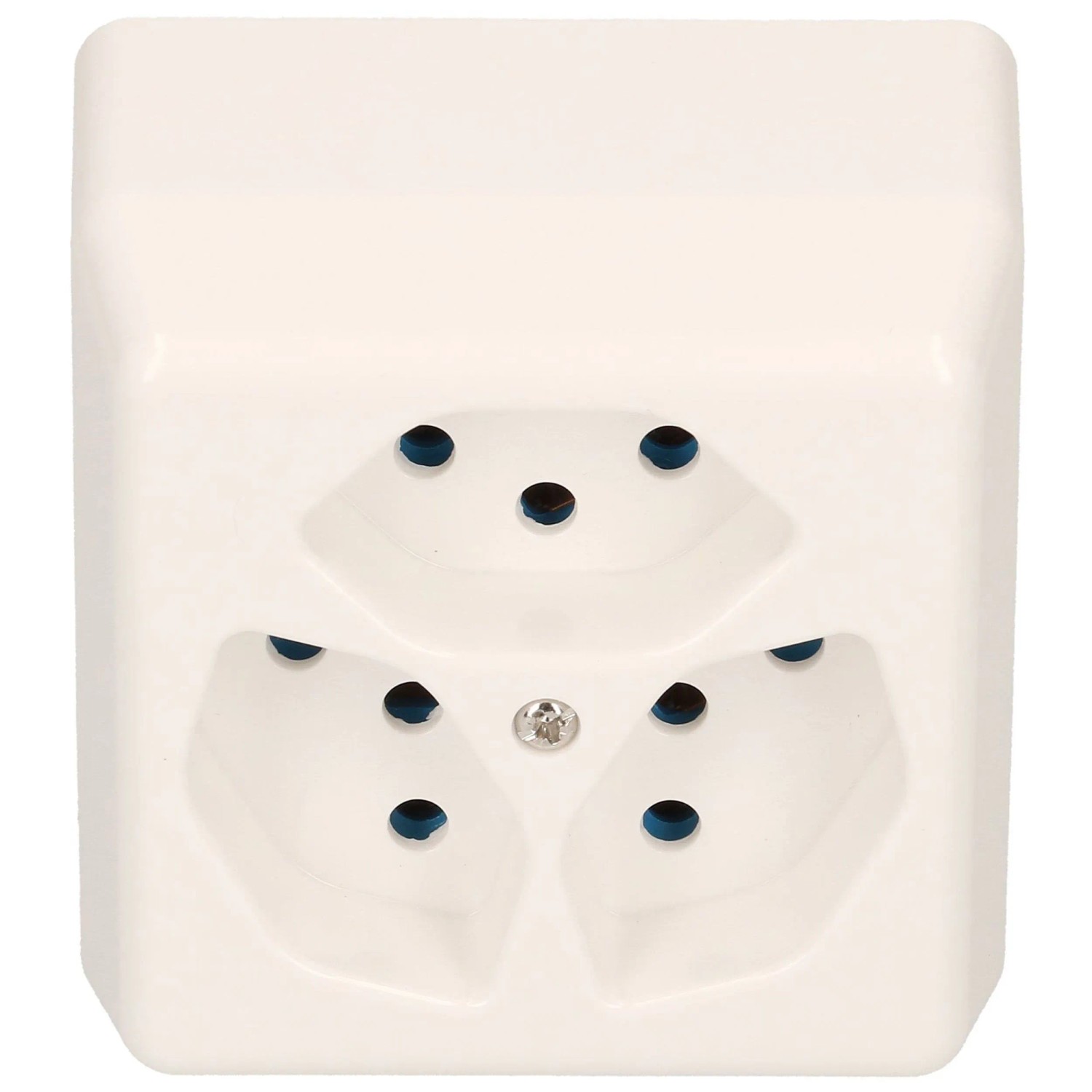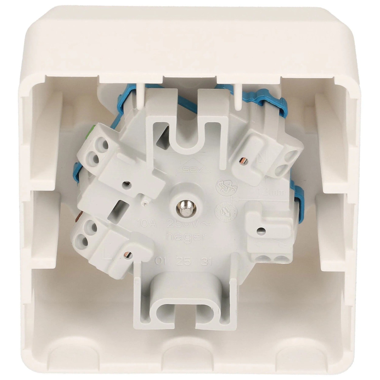 Die Basico-Linie von Hager bietet Ihnen eine bewährte Lösungspalette für eine breite Anwendung im Wohn- und Zweckbau. Sie vereint klassisches und zeitloses Design mit Zweckmässigkeit. Die Aufputzsteckdose ist weiss. Steckdosentyp: 3 x Typ 13 parallel.