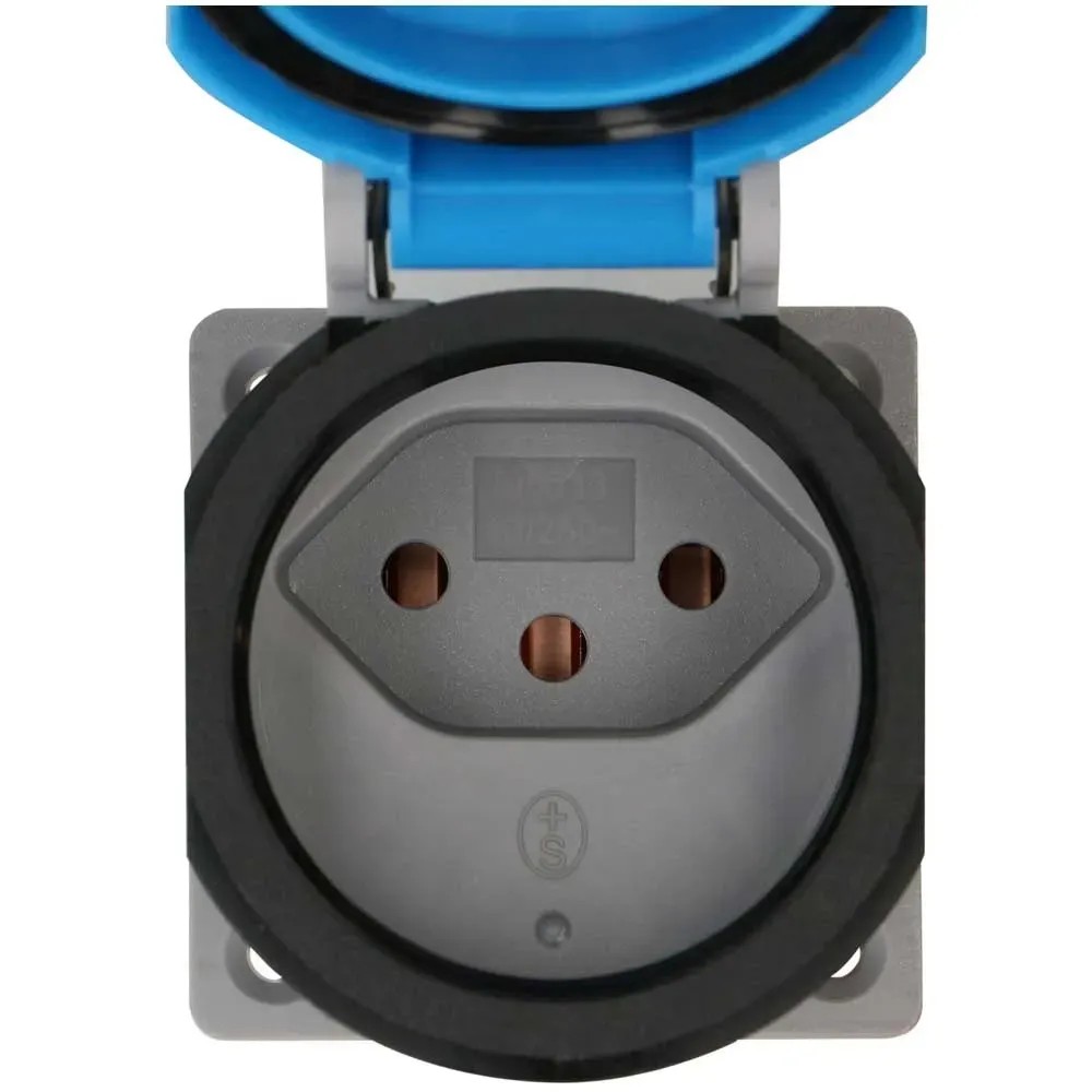 Einbausteckdose Typ13 L+N+PE IP55 Lichtgrau-Blau