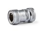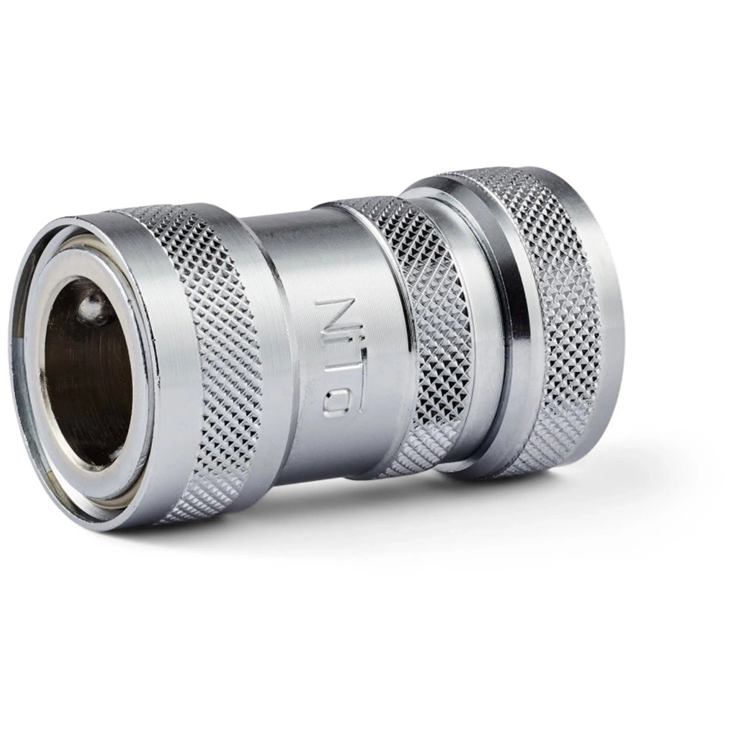 Die Neomatic Pro Ventilkupplung ist aus verchromtem Messing gefertigt und bietet hohe Beständigkeit gegenüber Witterung und Temperatur. Sie eignet sich für den Einsatz bei einem Maximaldruck von 25 bar und Temperaturen bis 80 °C. Die Kupplung verfügt über Anschlüsse mit M22x1, 1/2 Zoll und 3/4 Zoll und ist mit einem Rückflussverhinderer ausgestattet. Sie stellt eine robuste und korrosionsbeständige Verbindungslösung für unterschiedliche Leitungssysteme dar.