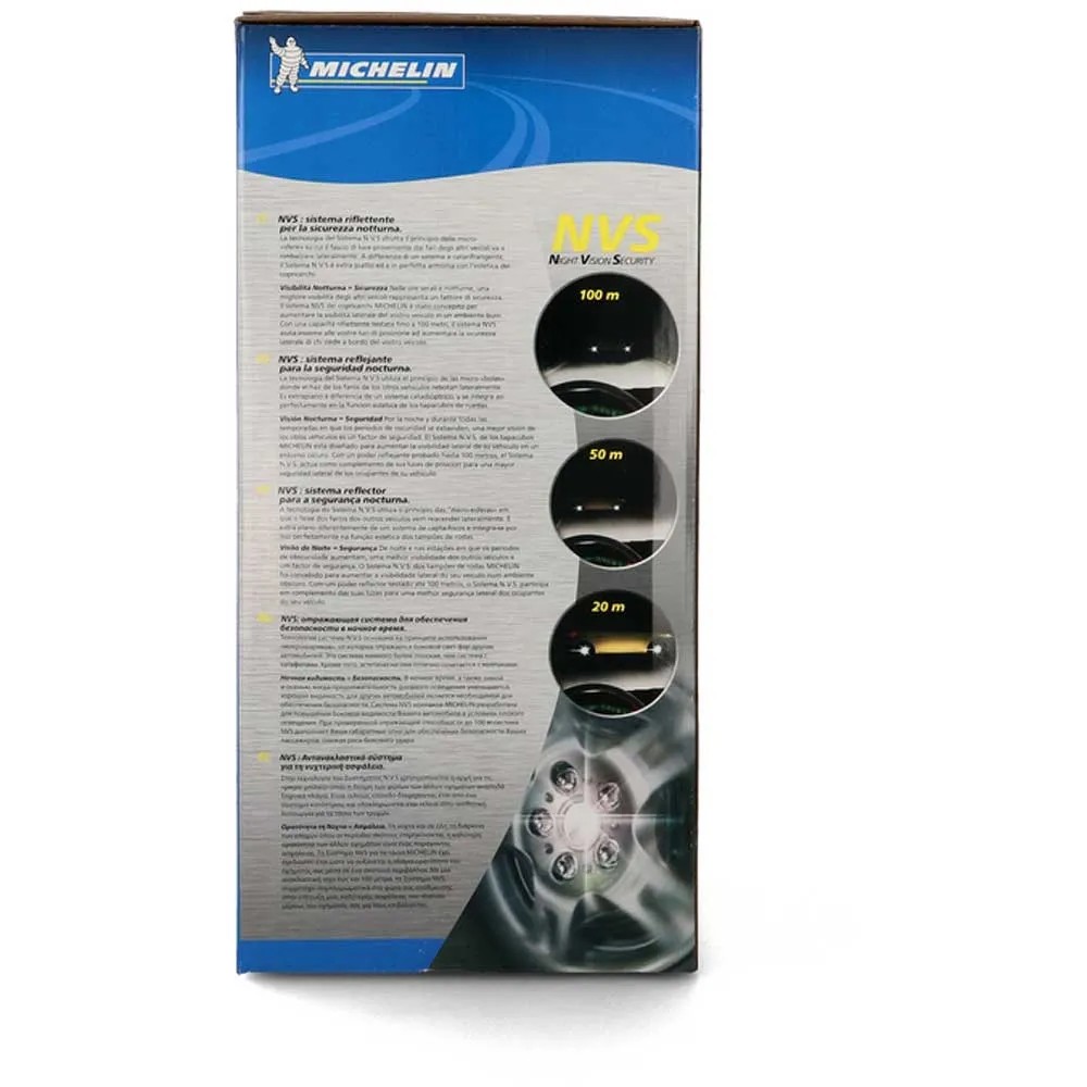 Die Radzierblenden von Michelin sind Abdeckungen für Autofelgen bzw. Stahlfelgen, die zu deren Schutz und optischer Verbesserung angebracht werden. Bei Nacht und während der Jahreszeiten, in denen es länger dunkel ist, ist eine verstärkte visuelle Wahrnehmung ein sehr wichtiger Sicherheitsfaktor. Im Zentrum der Radzierblende integriert, reflektiert das exklusiv für Michelin patentierte Night Vision Security-System (NVS), das Licht von Fahrzeugscheinwerfern, die sich seitlich nähern. Mit einem getesteten Reflektionsvermögen von bis zu 100 Metern sorgt das Night Vision Security-Sytem für zusätzliche Sichtbarkeit und damit für optimale Sicherheit.