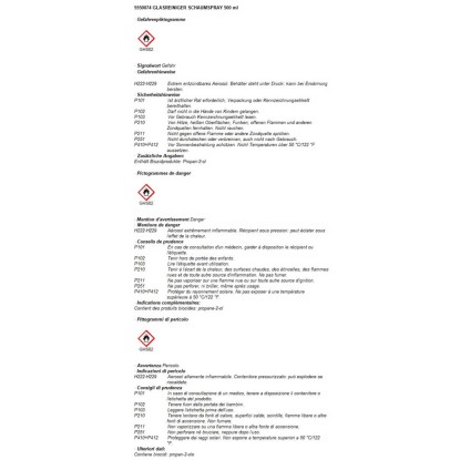 Hinweis: Nicht auf heissen Oberflächen oder in der prallen Sonne anwenden. Nicht für Polycarbonatglas geeignet. Vor Gebrauch bitte gut schütteln.