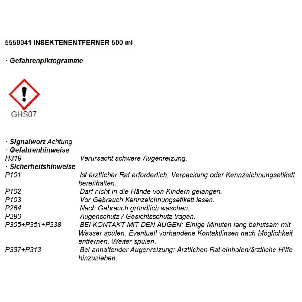 Der Insektenentferner von Motorex ist ein universell einsetzbarer Reiniger. Er löst starke und hartnäckige Verschmutzungen wie Teer, Harze und Insekten vor der Hauptwäsche an besonders verschmutzten Stellen wie Stoßstangen, Seitenschwellern und Frontscheiben. Das Produkt eignet sich zudem zur Entfernung von Vogelkot.