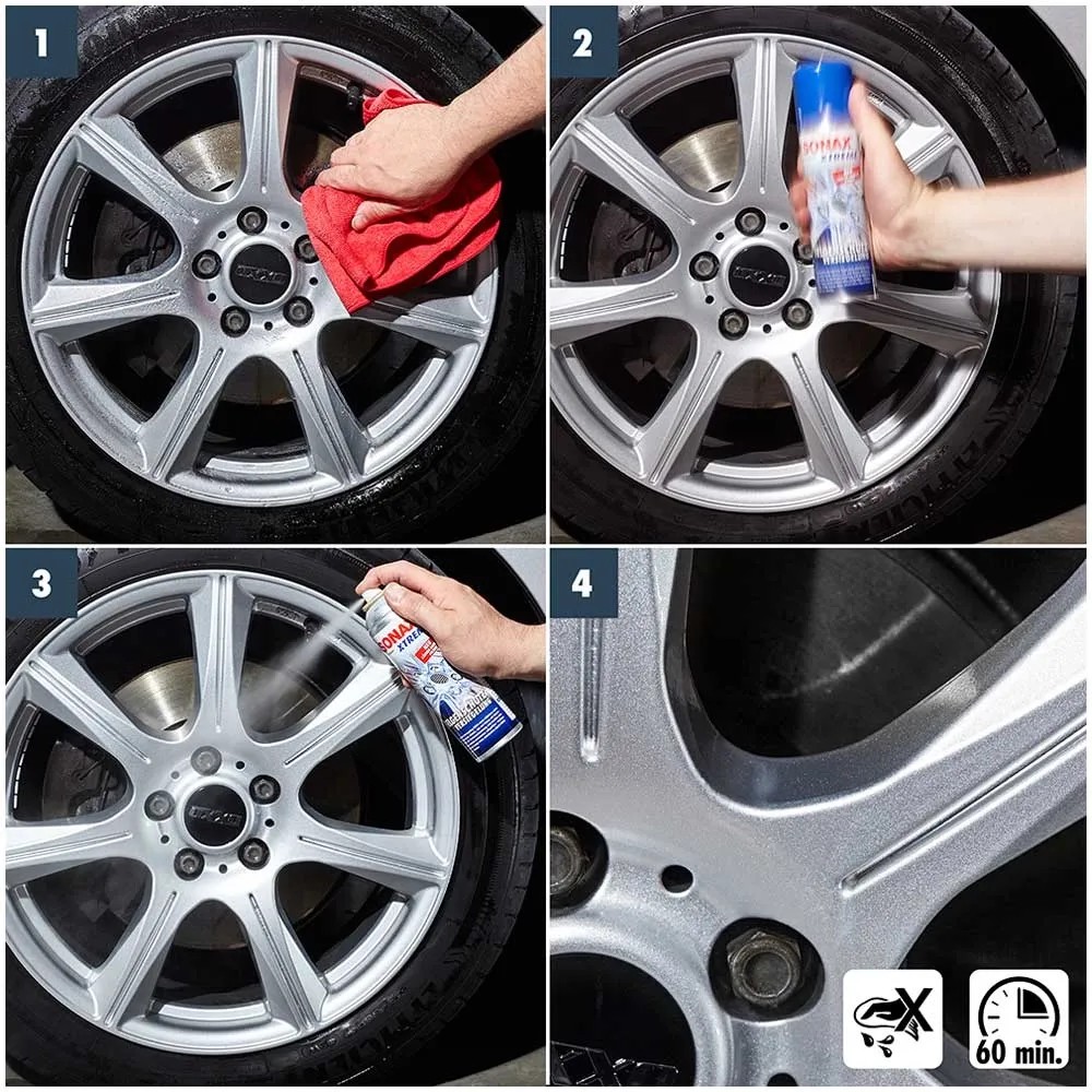 Die Felgenversiegelung erzeugt eine hydrophobe Schutzbarriere gegen hartnäckigste Verschmutzungen. Sie hinterlässt einen bemerkenswerten Abperl-Effekt. Die anschliessende Felgenreinigung wird durch den Easy-to-Clean-Effekt erheblich erleichtert. Das Spray eignet sich für alle Felgenarten.