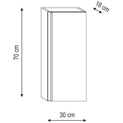 Der Hängeschrank aus der Serie York ist im modernen Industrial Style gehalten und passt ideal zu anspruchsvollen, dem Zeitgeist entsprechenden Innenausstattungen. Der glänzend-weiss lackierte Hängeschrank mit mattgrauer Griffleiste hat einen wechselbaren Türanschlag und die Masse betragen (HxBxT) 70 x 30 x 18 cm.