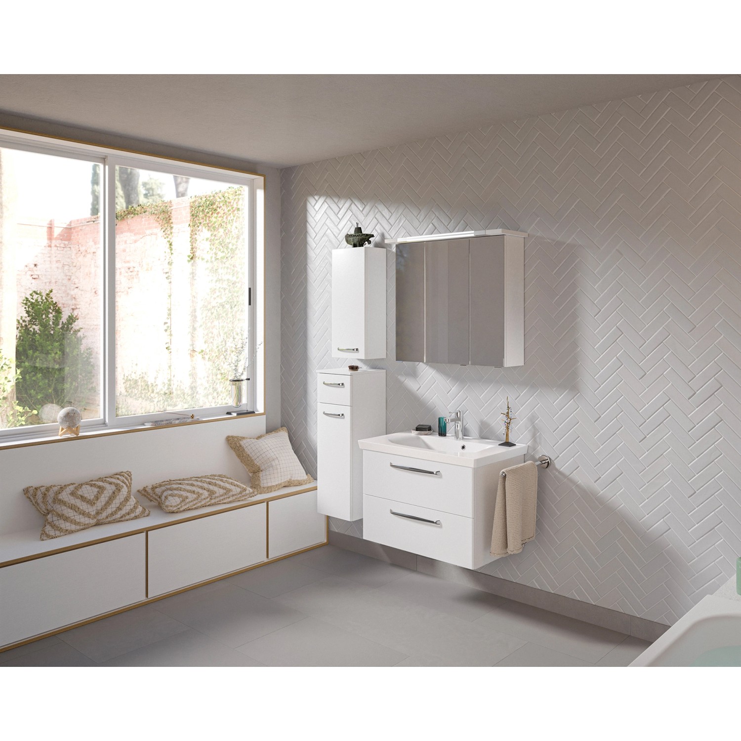 Bitte beachten Sie: Artikel dieser Serie sind nur bestellbar in Kombination aus mindestens Waschbecken, Waschbecken-Unterschrank und Spiegel oder Spiegelschrank.