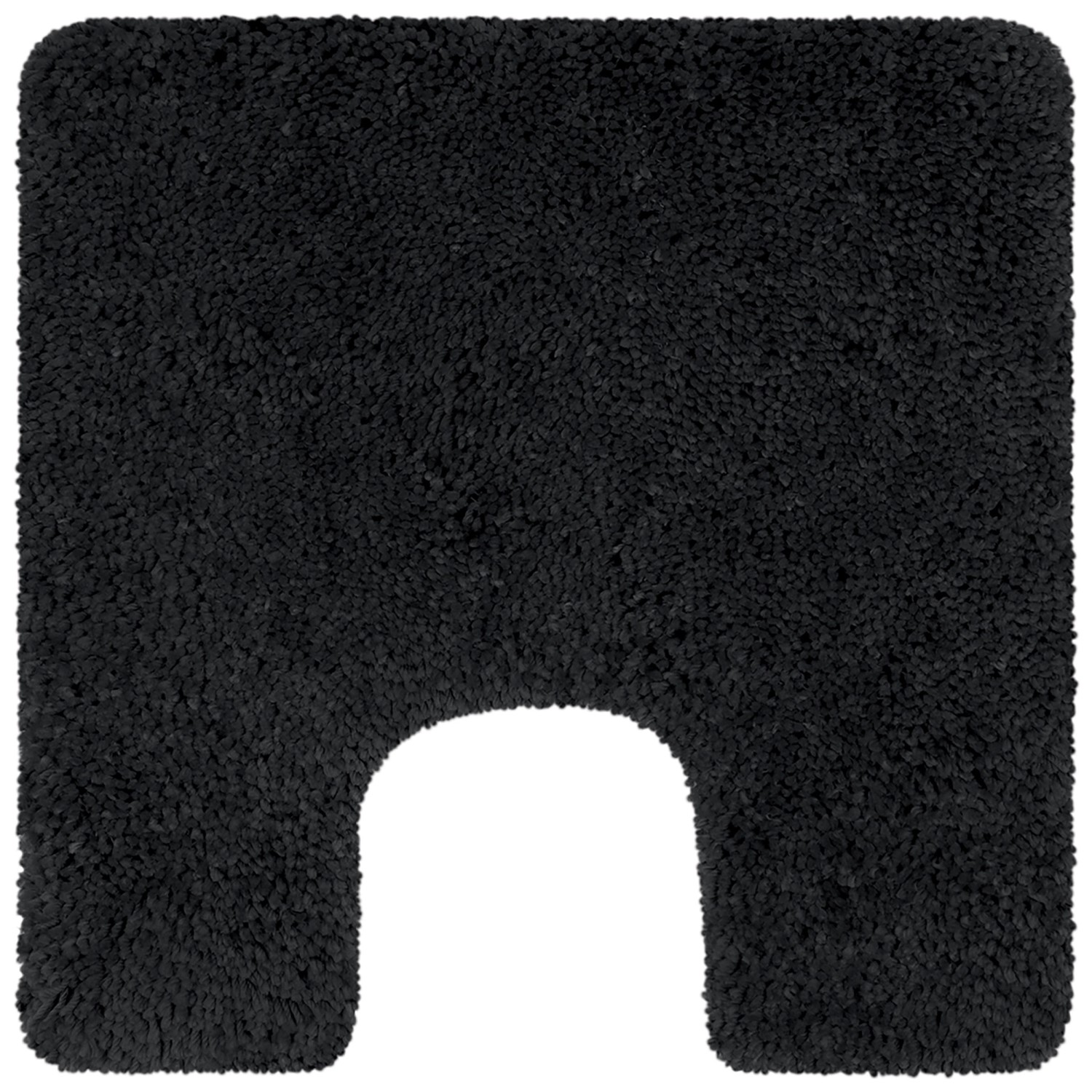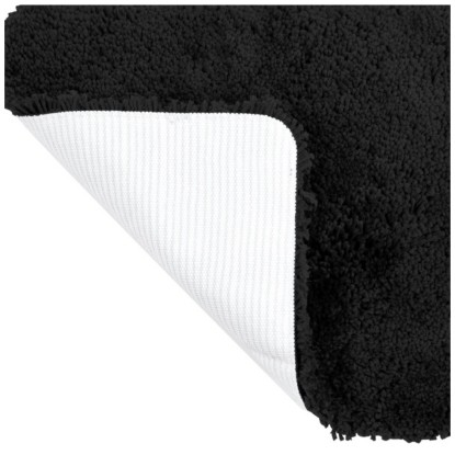 Der in mehreren Farben erhältliche Teppich ist bei 40 °C waschbar, schnelltrocknend, trocknergeeignet und kann auch in Räumen mit Fussbodenheizung genutzt werden. Er hat das Zertifikat Standard 100 von OEKO-TEX®, das erste Label, das die Verbraucherbedürfnisse im Hinblick auf die Humanökologie erfüllt. Es garantiert, dass sich im Teppich keine schädlichen oder gesundheitsgefährdenden Stoffe befinden. Die schwarze Badematte mit Ausschnitt hat eine Breite von 55 cm, eine Tiefe von 55 cm und eine Florhöhe von 2 cm.