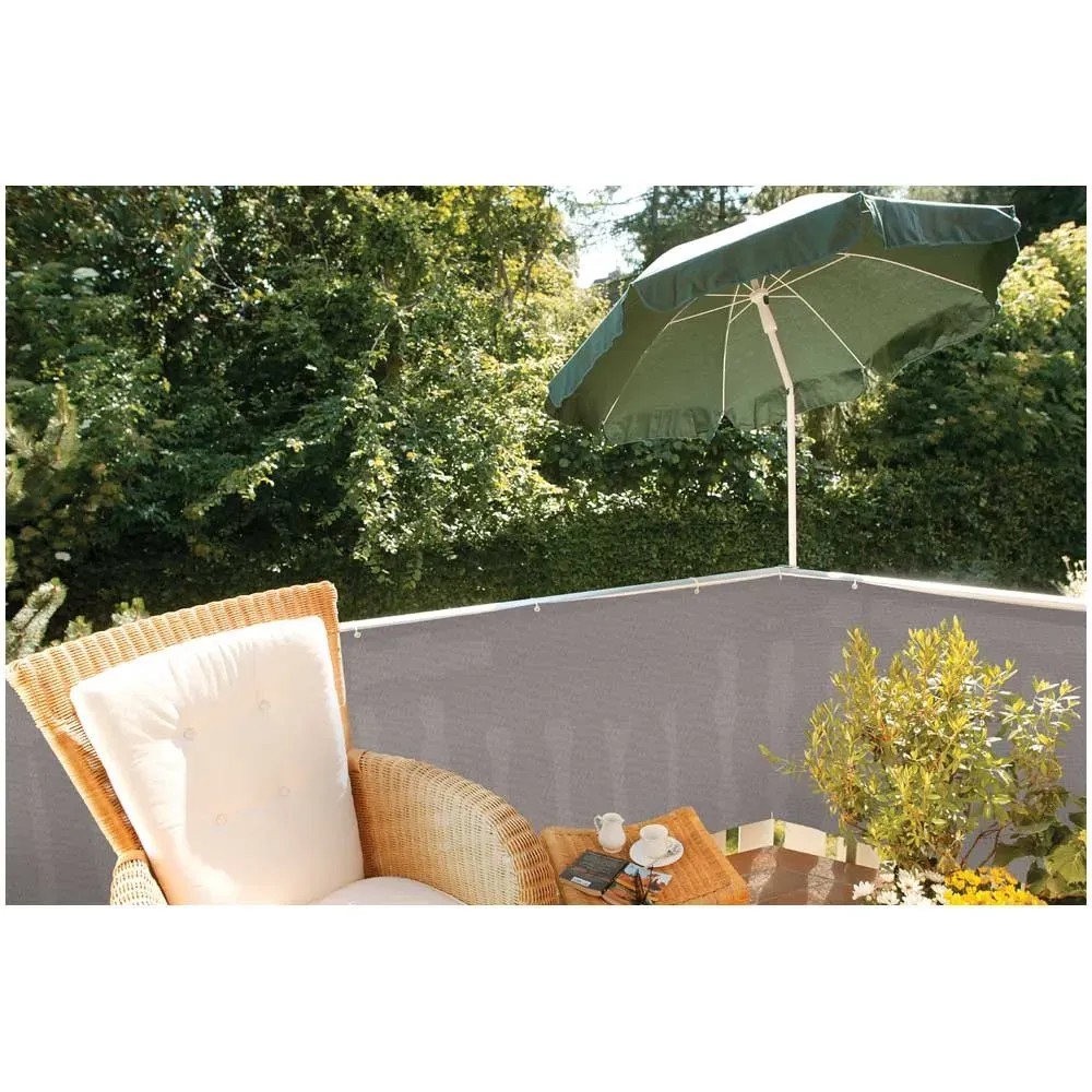 Diese Balkonverkleidung schafft einen ruhigen und eleganten Hintergrund für den Balkon. Eine Balkonbespannung bietet zuverlässigen Wind- und Sichtschutz und ist problemlos an jedem Balkongitter zu befestigen. Der farbneutrale Sichtschutz strahlt eine gewisse Ruhe aus und sorgt dafür, dass Ihr Sitzplatz nicht von aussen einsehbar ist.
