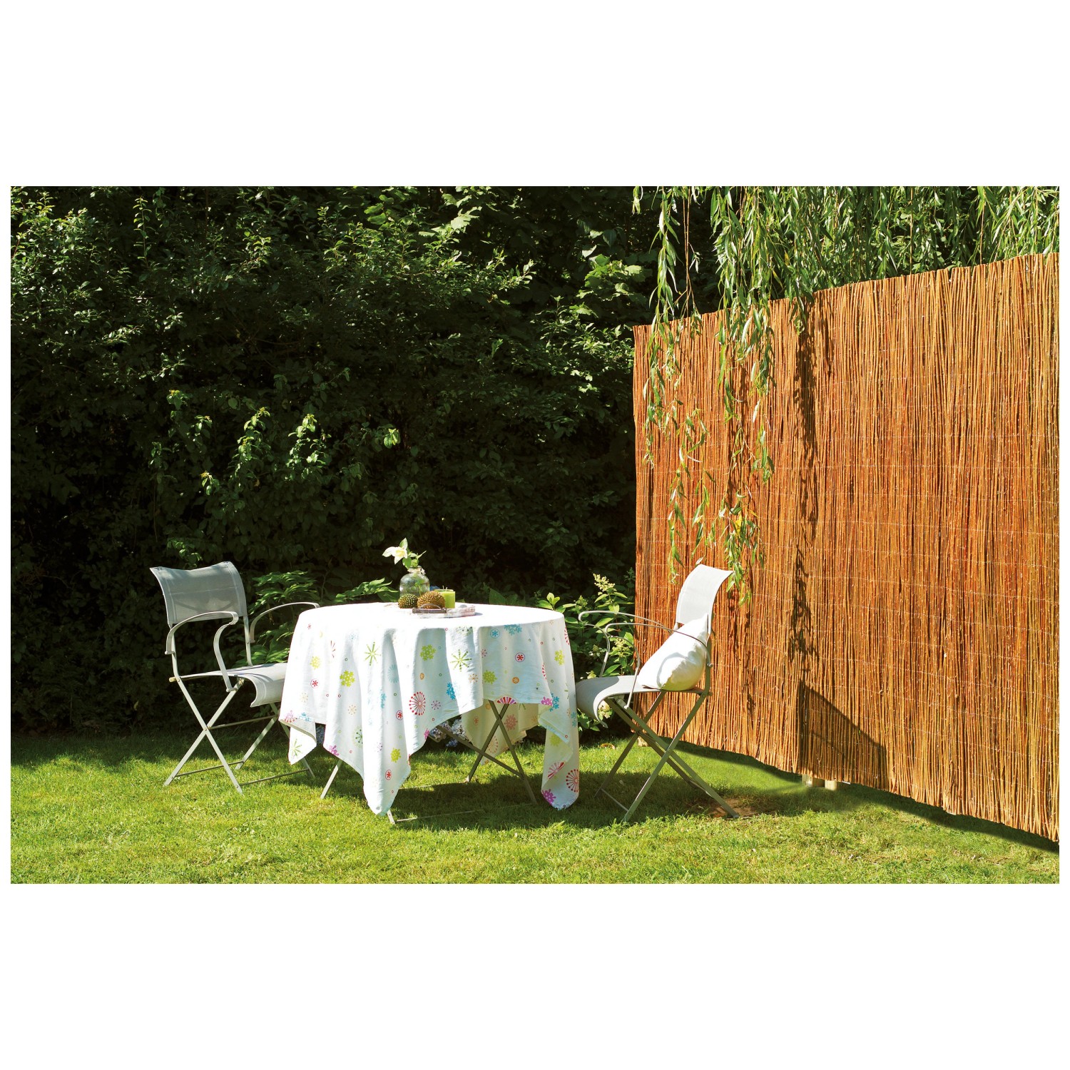 Die Weidenmatte Champagne ist ein attraktiver Sichtschutz aus robusten Weidenzweigen. Die Weidenmatte ist schnell und unkompliziert montiert und eignet sich im Garten oder auf dem Balkon als dekoratives Gestaltungselement, das vor ungewollten Blicken und Wind schützt.