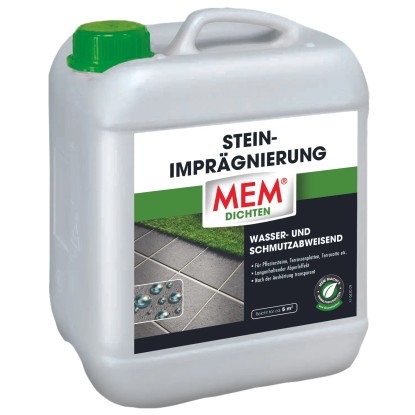 MEM Stein-Imprägnierung ist eine transparente Imprägnierung für alle saugenden Terrassenplatten. Durch die Imprägnierung entsteht ein Abperleffekt, sodass Wasser nicht mehr eindringen kann und die Algen- sowie Moosbildung verhindert wird.