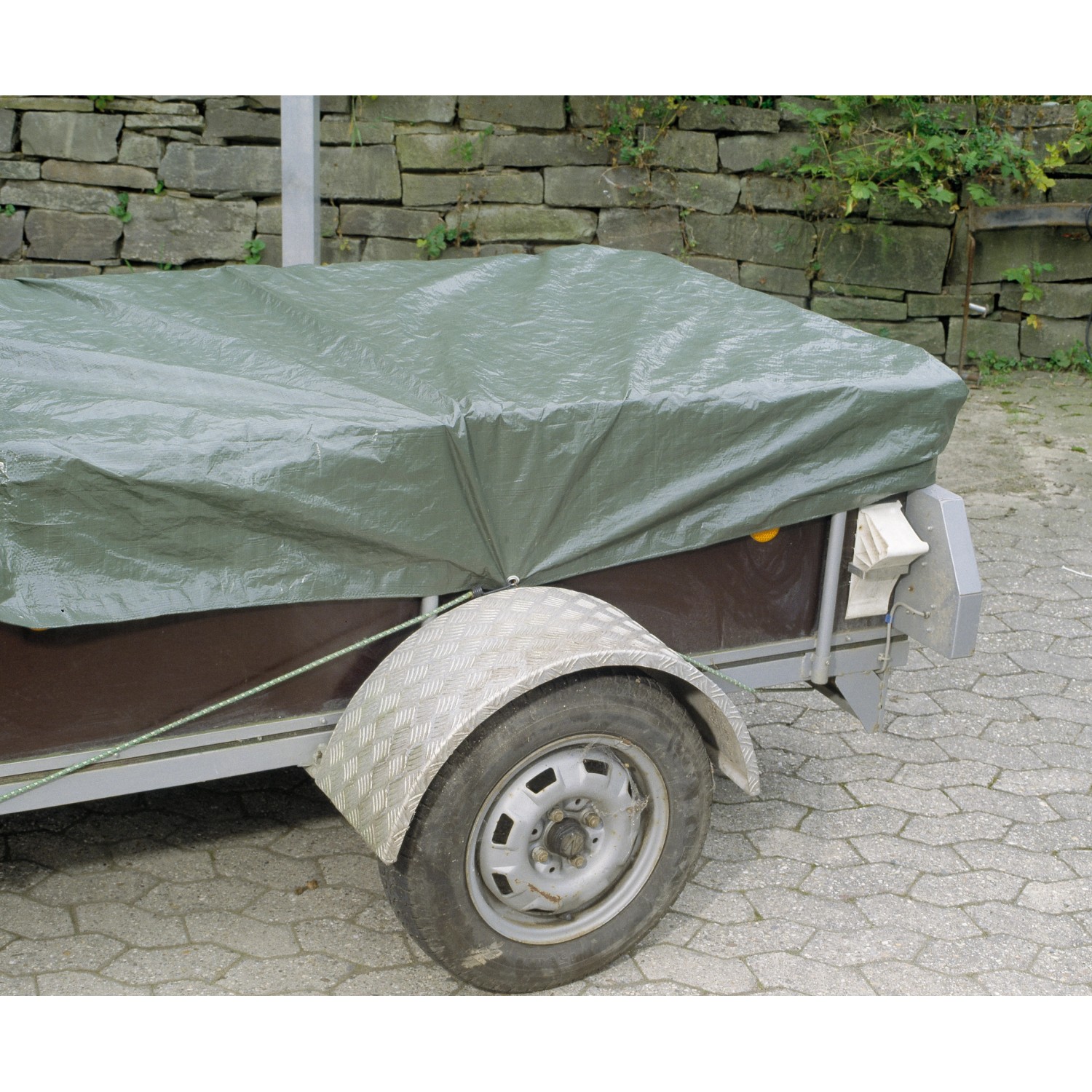 Die grüne LUX-TOOLS Gewebeplane 6 x 8 m besteht aus PE-Kunststoff (Polyethylen). Sie eignet sich besonders gut zum Schutz vor Schmutz und Nässe. Die Gewebeplane ist universell einsetzbar und eignet sich daher auch gut im professionellen Bereich, z. B. als Windschutz am Haus oder als Anhängerabdeckung. Die Plane hat eine Fläche von 48 m². Gewicht: 120 g/m².