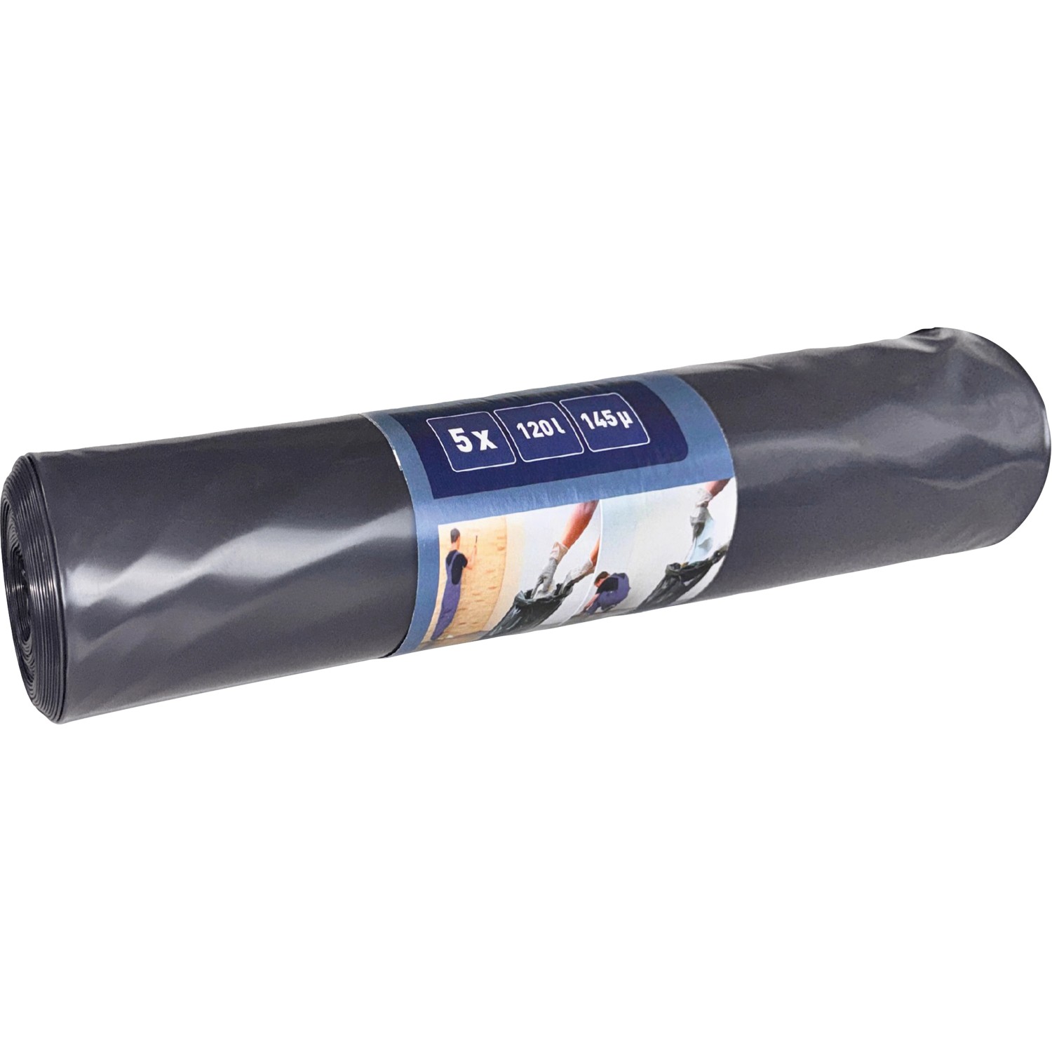LUX-TOOLS Bauschuttsack Schwarz 120 l / 146 my / 5 Stk.