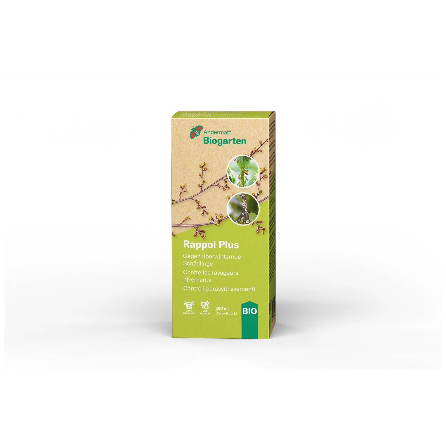 Rappol Plus wirkt gegen überwinternde Schädlinge wie Blattläuse, Napfschildläuse und Spinnmilben. Es eignet sich für die Anwendung auf Obstbäumen, Beeren und Gehölzen. Die Anwendung erfolgt bei Austrieb.