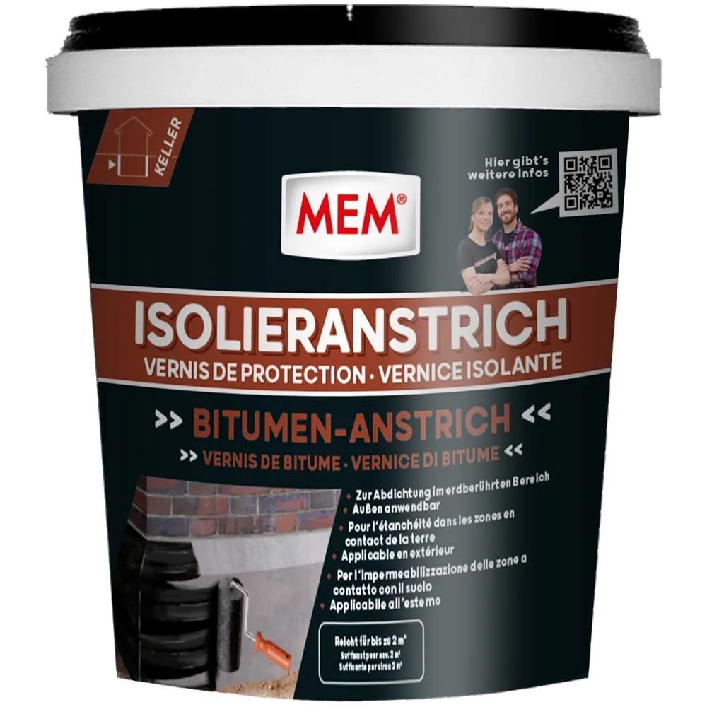 MEM Isolieranstrich lösemittelfrei ist ein kaltflüssiger, lösemittelfreier Schutzanstrich gegen Feuchtigkeit im erdberührten Bereich. Geeignet für Mauerwerk, Beton und Putzflächen. Er ist leicht zu verarbeiten und hat ein sehr gutes Deckungsvermögen.