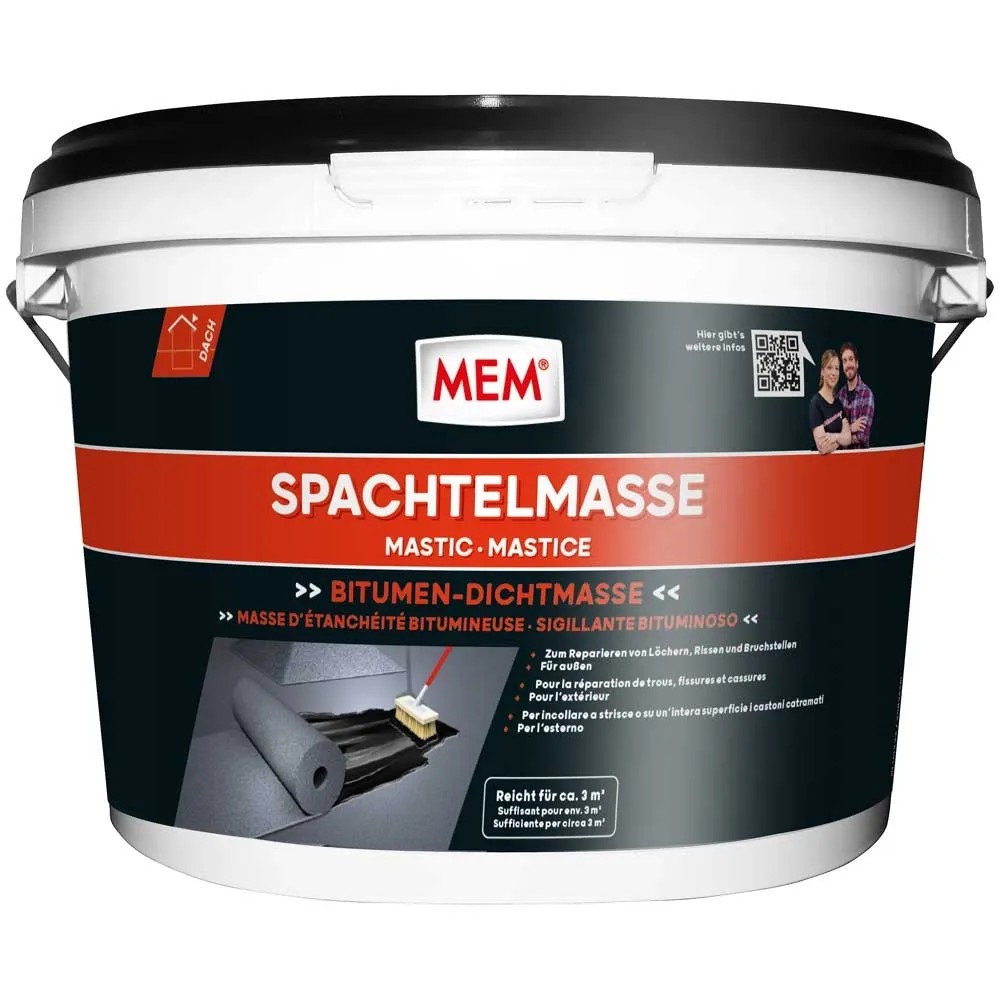 MEM Spachtelmasse Profi ist lösemittelfrei und dichtet speziell Leckstellen, Anschlüsse und Kehlen im Anschlussbereich dauerhaft ab. Die Spachtelmasse ist zudem wasserdicht und rissüberbrückend.