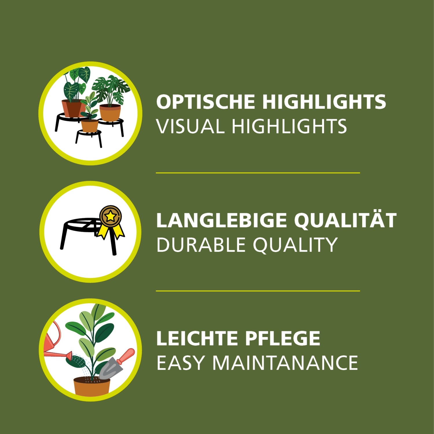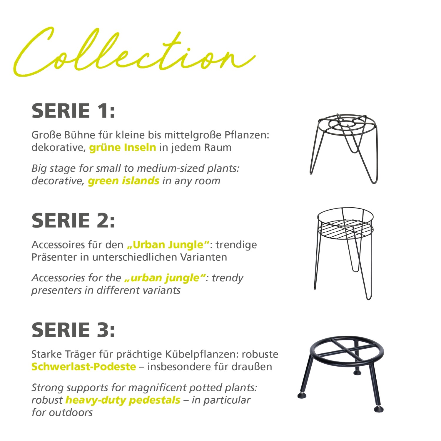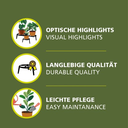 Der Pflanzenständer bietet mit einer Tragkraft von bis zu 200 Kilogramm sicheren Halt für verschiedenste Pflanzentöpfe und wird ohne Rollen geliefert. Er ist frei stehend sowie rund geformt und besitzt drei Beine. Dieses Markenprodukt der Wagner® System GmbH ist als einzelner Pflanzenständer erhältlich und setzt dekorative Akzente im Haus, Büro oder Garten.