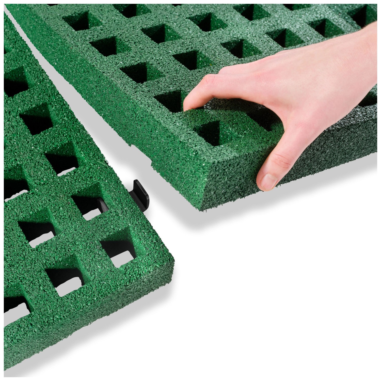 Bei so hohen Sprüngen steht die Sicherheit natürlich an erster Stelle. Die wird bei diesem Trampolin dank der einzigartigen Exit Freezone Sicherheitsplatten gewährleistet. Die hochwertigen Antirutschmatten bieten zusätzliche Sicherheit, sind aber weniger auffällig als ein Sicherheitsnetz. Da der Rasen durch die Sicherheitsplatten hindurch wächst, sind sie kaum sichtbar.