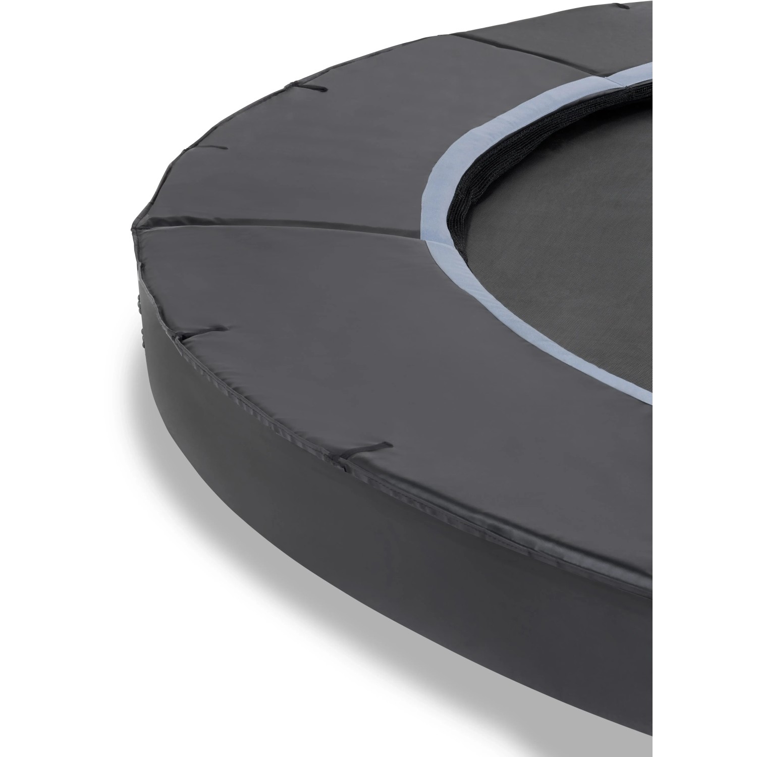 Dank modernem Look mit mattschwarzem Finish und subtilen Farbdetails fügt sich das ebenerdige Trampolin nahtlos in Ihren Garten ein.
