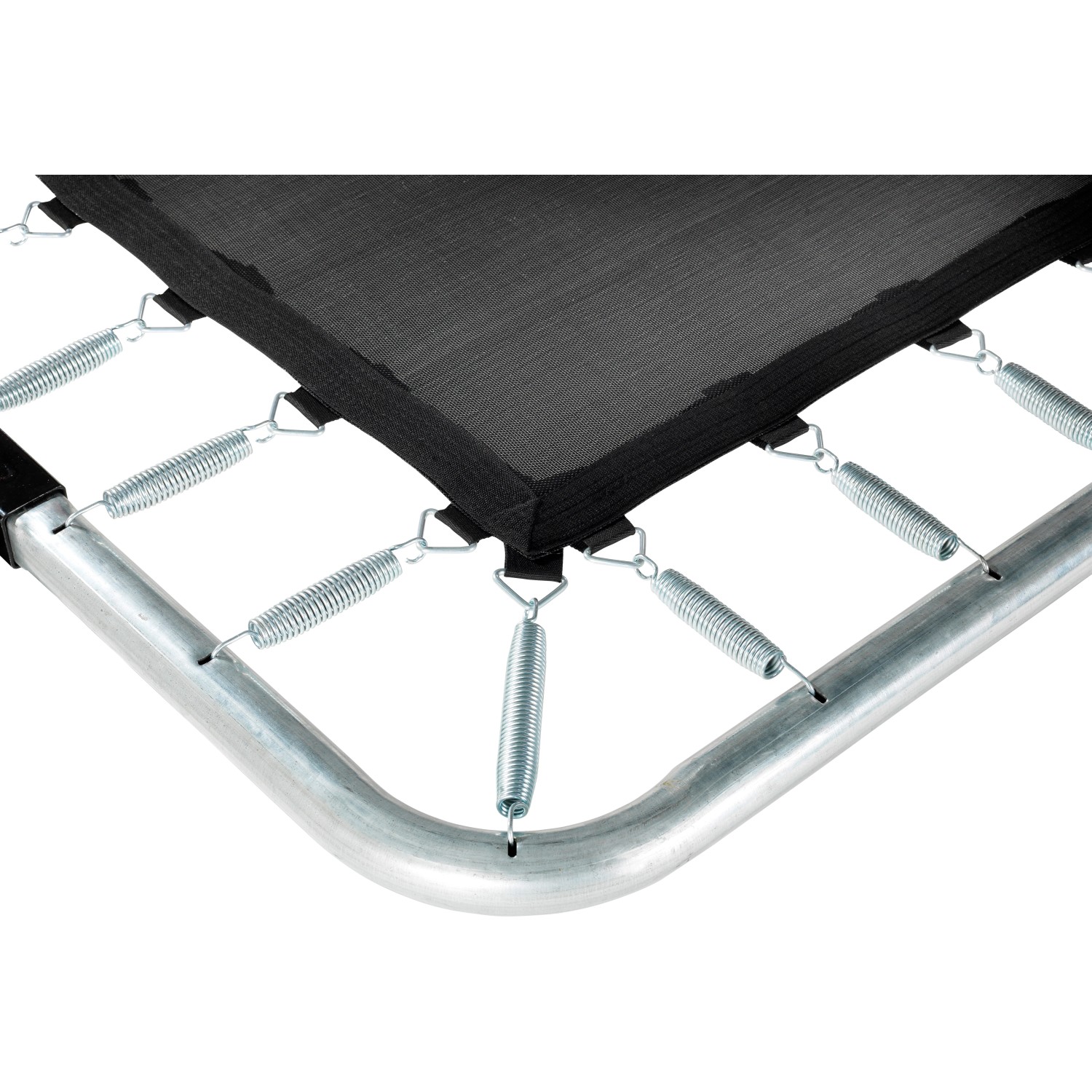 Das Bodentrampolin Silhouette ist ein rechteckiges Trampolin. Das Sicherheitsnetz, das mit diesem Trampolin mitgeliefert wird, ist mit gebogenen Ständern ausgestattet, sodass das Netz straff gespannt steht. Der hochwertige Schutzrand deckt die galvanisierten Federn völlig ab und ist mit einem speziell entwickelten Fussschutzsystem ausgerüstet, damit der Fuss nie zwischen die Federn kommen kann. Die soliden Federn gewährleisten eine gute Sprungkraft. Der Rahmen des Trampolins ist galvanisiert und pulverbeschichtet, damit Rost keine Chance hat. Auf den rechteckigen Trampolinen Exit Silhouette erleben Sie endlos viel Hüpfspass!