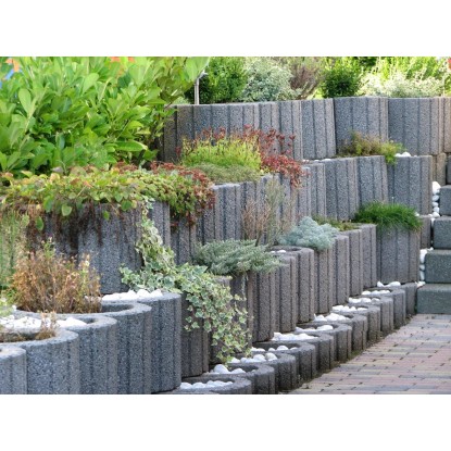 Die begrünbaren, gekehlten Pflanzringe aus Leichtbeton eignen sich zur Hangsicherung für lange Geraden, Ecken oder zur Gestaltung mit Kurvenverlauf.