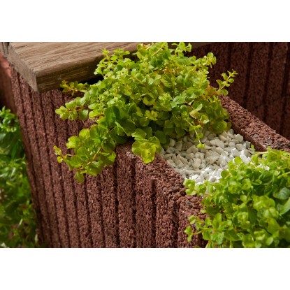 Der kleine, rechteckige Pflanzstein dient als Begrenzung und zur Sicherung von niedrigen Hängen. Er bietet in Kombination mit dem kleinen, runden Pflanzring oder dem Minipflanzstein Plus viele Gestaltungsmöglichkeiten.
