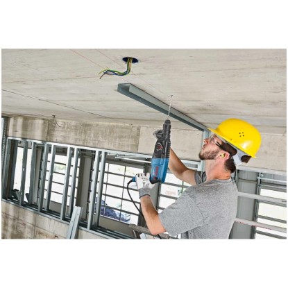 Dieses Elektrowerkzeug eignet sich zum Bohren und Meisseln in Beton, Mauerwerk, Holz und Metall. Es ist kompatibel mit verschiedenen Systemzubehören zur Staubabsaugung.