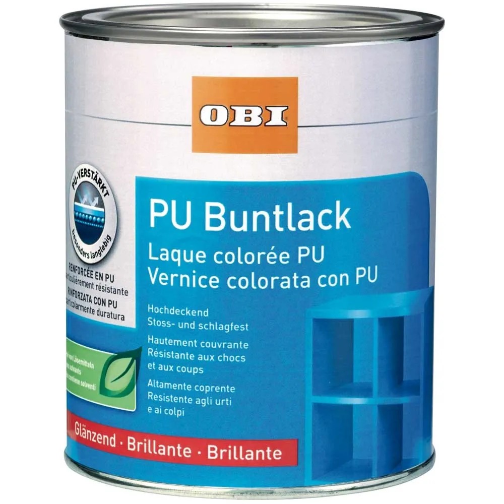 Der OBI PU-Buntlack ist ein wasserverdünnbarer, haftstarker Acryllack für Lackierungen von grundiertem Holz, grundierten Metallen und lackierbaren Kunststoffen. Er eignet sich ebenfalls für vorbehandelte mineralische Untergründe sowie für Renovierungsanstriche auf tragfähigen Altanstrichen im Innen- und Aussenbereich. Ebenso ist dieser Buntlack für Lackierungen von Warmwasserheizkörpern mit einer Vorlauftemperatur von bis zu +60 °C geeignet.