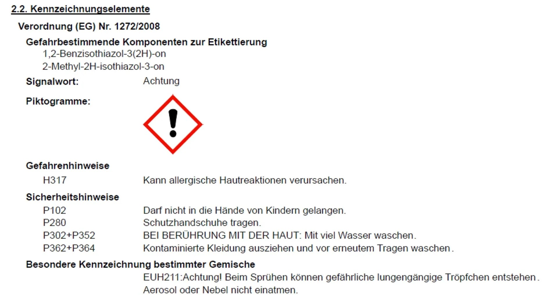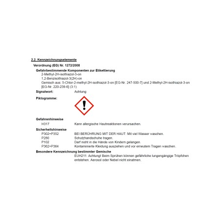 | Für Allergiker auf Isothiazolinone geeignet: | Nicht geeignet |