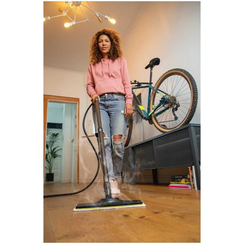 Der einfach und intuitiv bedienbare Einstiegs-Dampfreiniger von Kärcher bietet eine 2-stufige Dampfregulierung zur Anpassung der Dampfintensität an Oberfläche und Verschmutzungsgrad. Eine praktische Zubehöraufbewahrung am Gerät sowie die Parkposition für die Bodendüse sind nützliche Details für eine noch komfortablere Dampfreinigung.