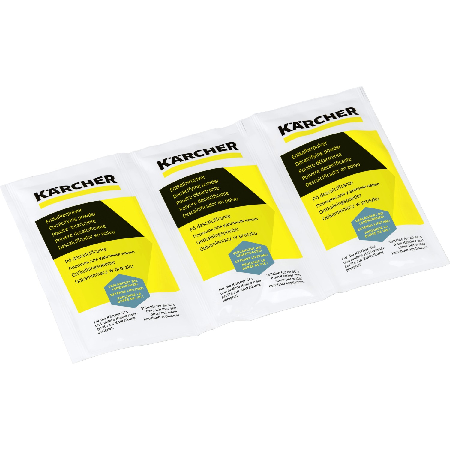 Das Kärcher Entkalkerpulver entkalkt Dampfreiniger und andere Heisswassergeräte, wie zum Beispiel Wasserkocher oder Kaffeemaschinen wirkungsvoll. Dadurch bewirken Sie, dass die Geräte eine längere Lebensdauer und einen niedrigeren Energieverbrauch haben.